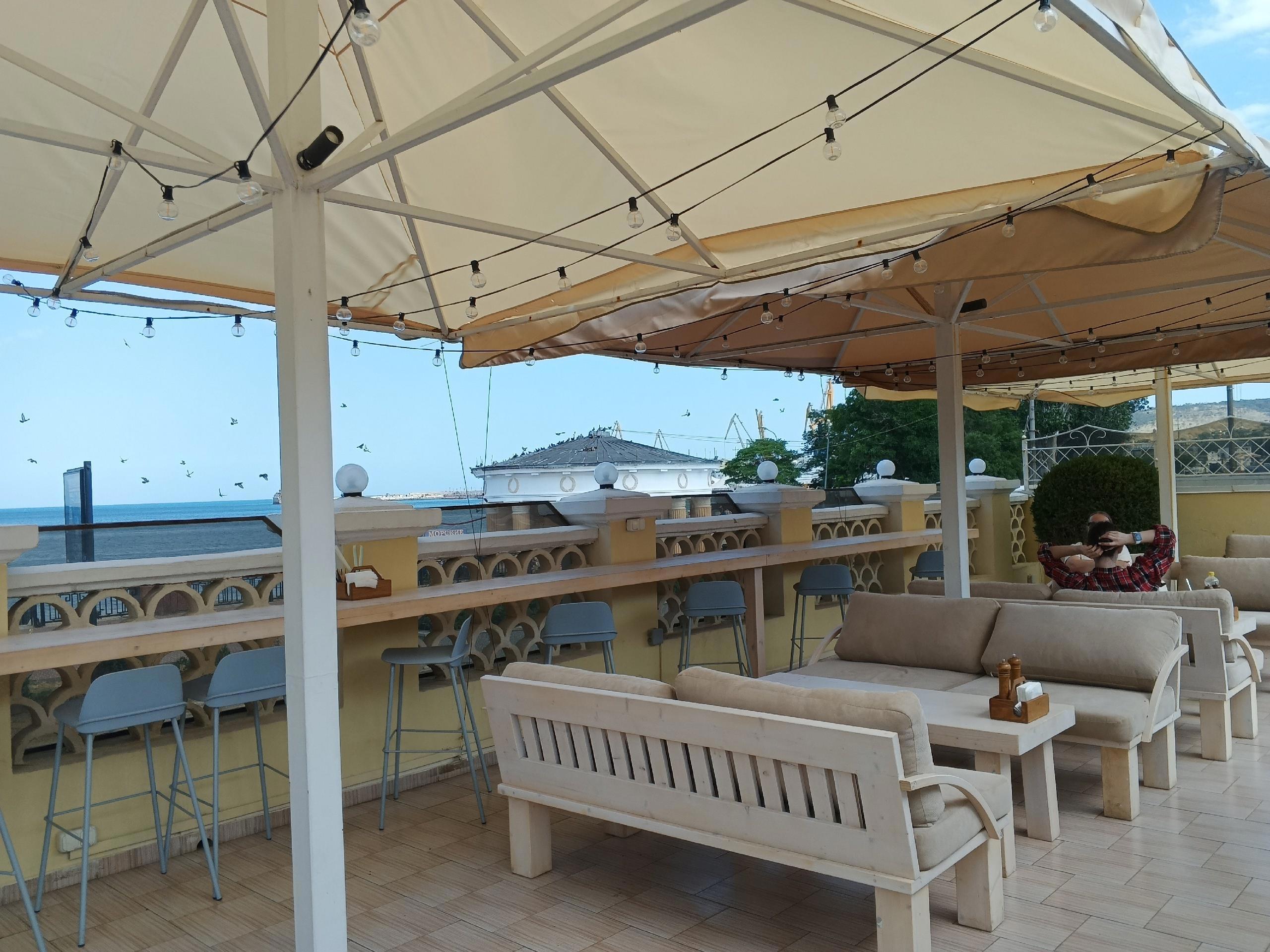 Здесь удобные диванчики, большие зонты, можно посидеть со всеми удобствами никуда не торопясь.