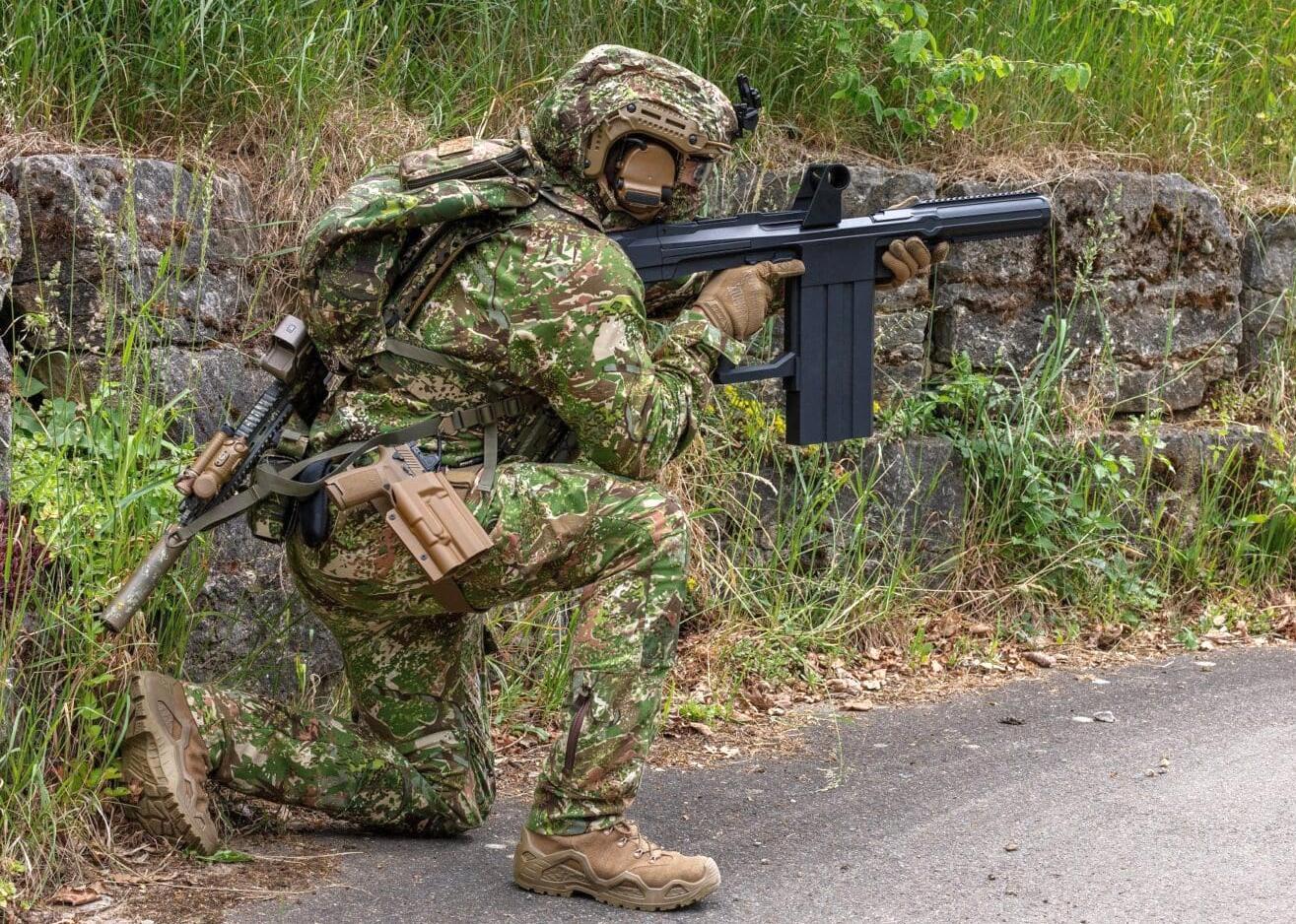 Идея использования коробчатых магазинов для ручных многозарядных гранатомётов витает не только в наших оружейных КБ, но и забугорных тоже. Например, немцы в этом году на одной оружейной выставке похвастались своей новой разработкой. Компания «Rheinmetall» представила автоматический гранатомёт калибра 40 мм SSW40. Вот он: