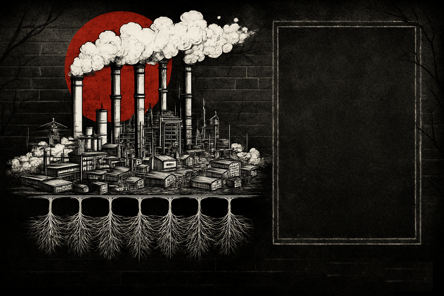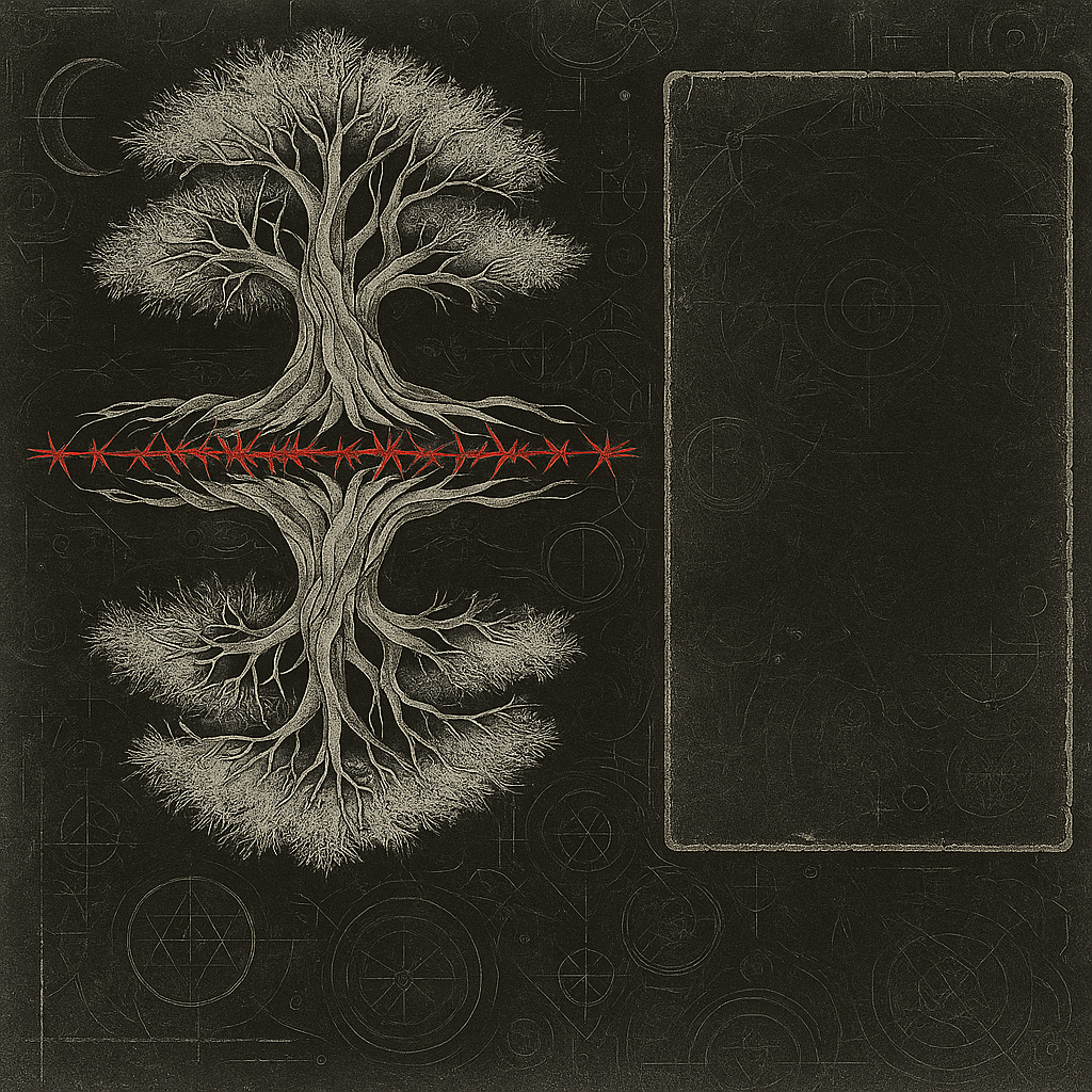 - Грубый, фактурный, слегка «военный» или технократический фон (например, с текстурой бумаги, стали или камня).