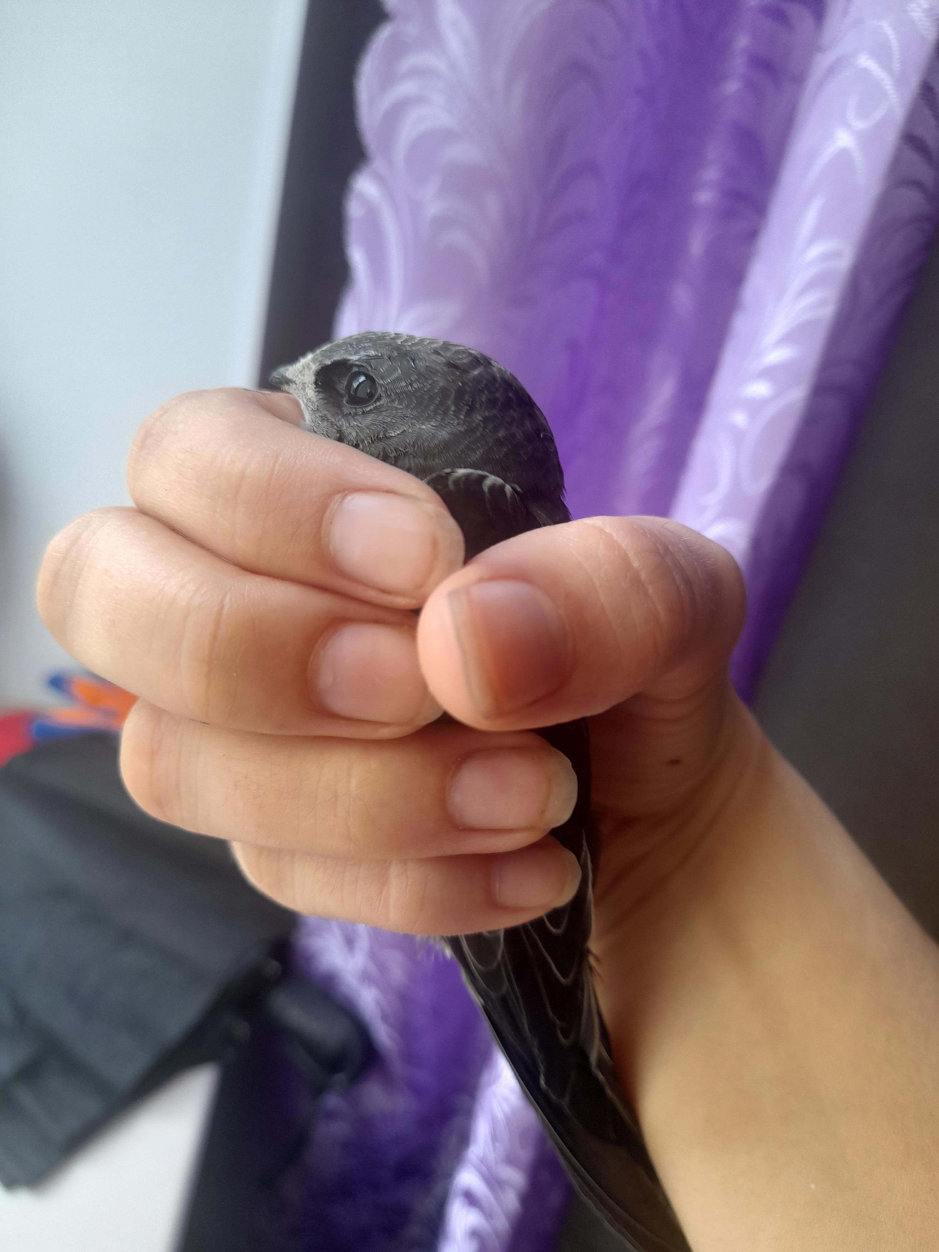 Началось всё с того, что позавчера Фея - кошка Хеллфайра - начала ломиться в ванную и пялить в стену. Вскоре стало понятно, что оттеда раздаются звуки, которые, по идее, бетон и провода не издают. Совместно решили, что это мышь, дом-то старый. Шебуршения продолжались ночью и следующим днём, но медленно переместились от угла комнаты к дверному проёму. А сегодня в щель между пластиковой панелью и уголочком показалось крыло. Самым кончиком и всего нанесколтко секунд, но, по счастью, мне удалось его не только заметить, но и опознать. Наша домовая мышь оказалась вполне себе диким стрижом. Видимо, попал в вентиляцию. А главное, не сдался, угодив в такое положение - ведь если бы он от крыши не дополз в стене до дверей ванной Хелла, то уже и не выбрался бы никогда.