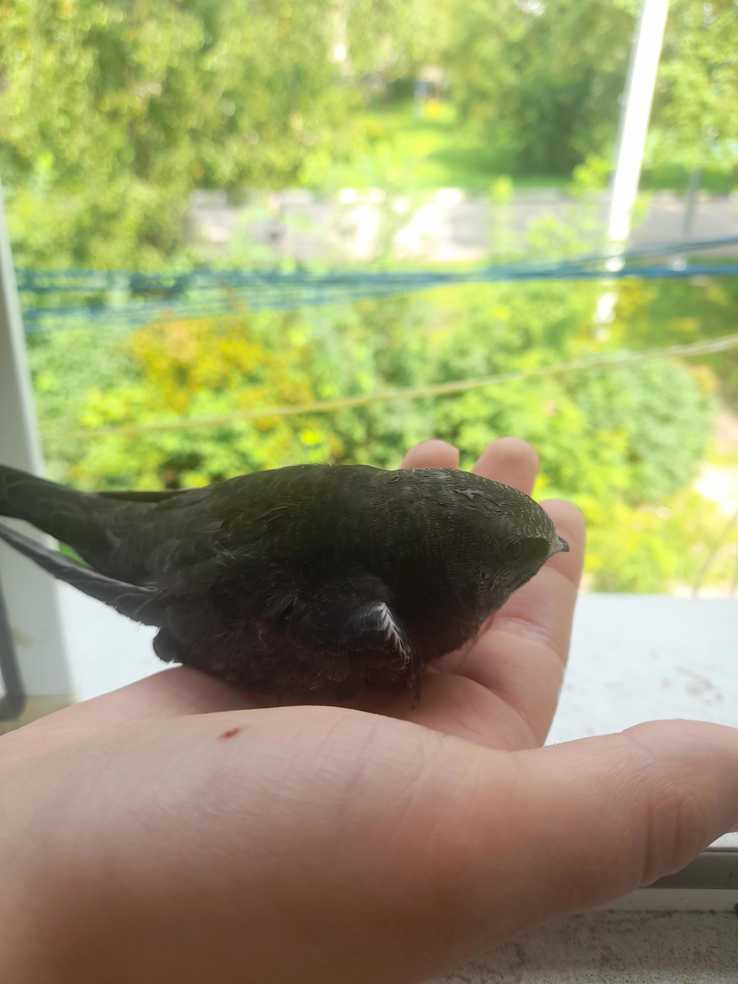 Пить он отказался, да и полетел не сразу. Думали даже, что слишком ослаб, но нет, в итоге оклемался чуток и полетел. Ну что ж, удачи ему, погода сейчас хорошая, насекомых по городку летает много. Надеюсь, окрепнет и больше не будет падать в трубы.
