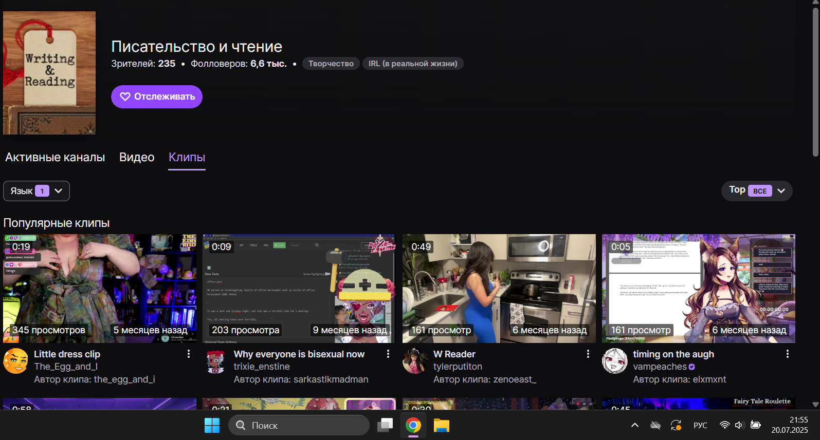 Клипы, самая людная и проматриваемая зона, собрала... ТРИСТА просмотров. А я напомню, что в каждую секунду в течениии последних 5 лет 300 человек минимум смотрят на твиче, как кто-то играет в шахматы. Это чудовищно мало, а стримеров онлайн сейчас и того меньше.
