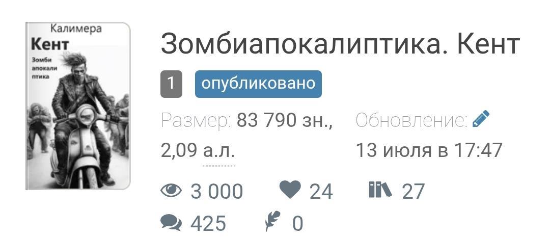Ура! Роман в стишках "Кент", что пишется в рамках зубодробительного флешмоба "Зомби в стихах", взял еще одну вершину: 3 тысячи просмотров! За три недели и один день!