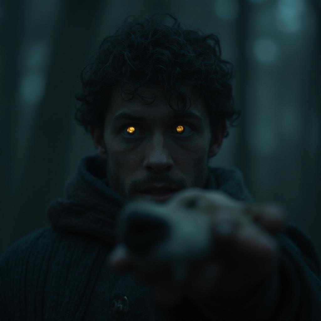Изжёванная в волчьей пасти левая рука висела плетью, но совсем не болела, наоборот, Феликс ее не чувствовал. Он всё пытался обнять себя, прижать ставшую чужой руку к телу и хоть таким образом зафиксировать, но что-то круглое и упругое в другой руке мешало это сделать. Разжав ладонь, он обнаружил на ней, весь в кровавых разводах, мутно-белый пузырь -- целиковый волчий глаз, с хвостом вырванных с корнем сосудов, с янтарной роговицей и огромным черным зрачком. Зрачок, казалось, фокусировался на Феликсе, точно с целью отразить его на сетчатке и запомнить, таким образом, навсегда. Феликсу даже показалось, будто он видит свое уменьшенное и перевёрнутое изображение в этой дьявольской камере обскура.