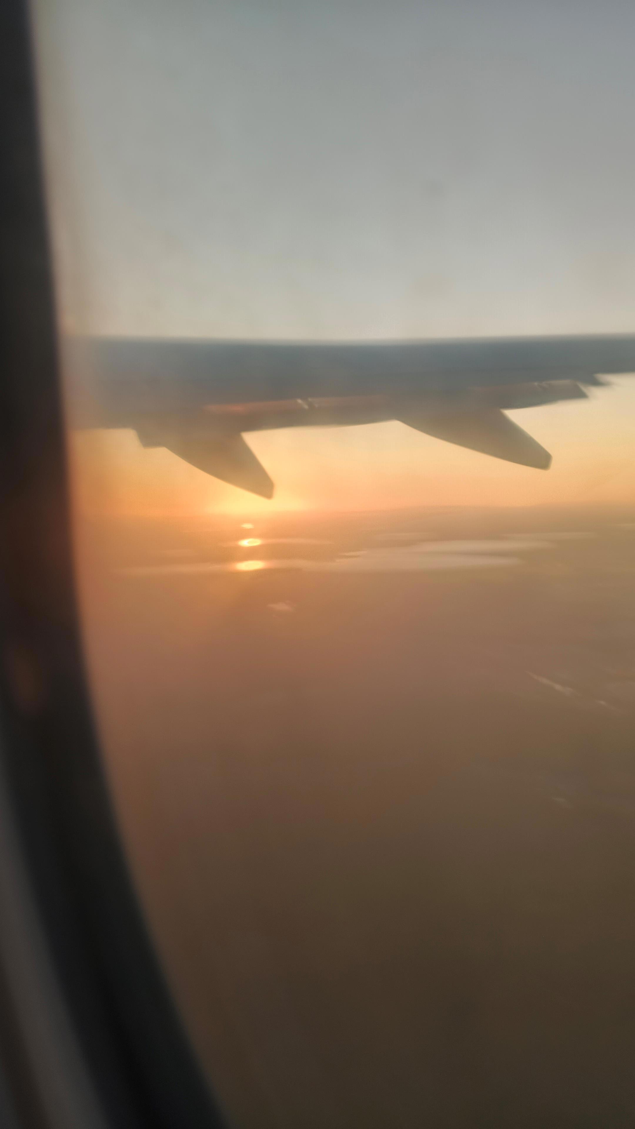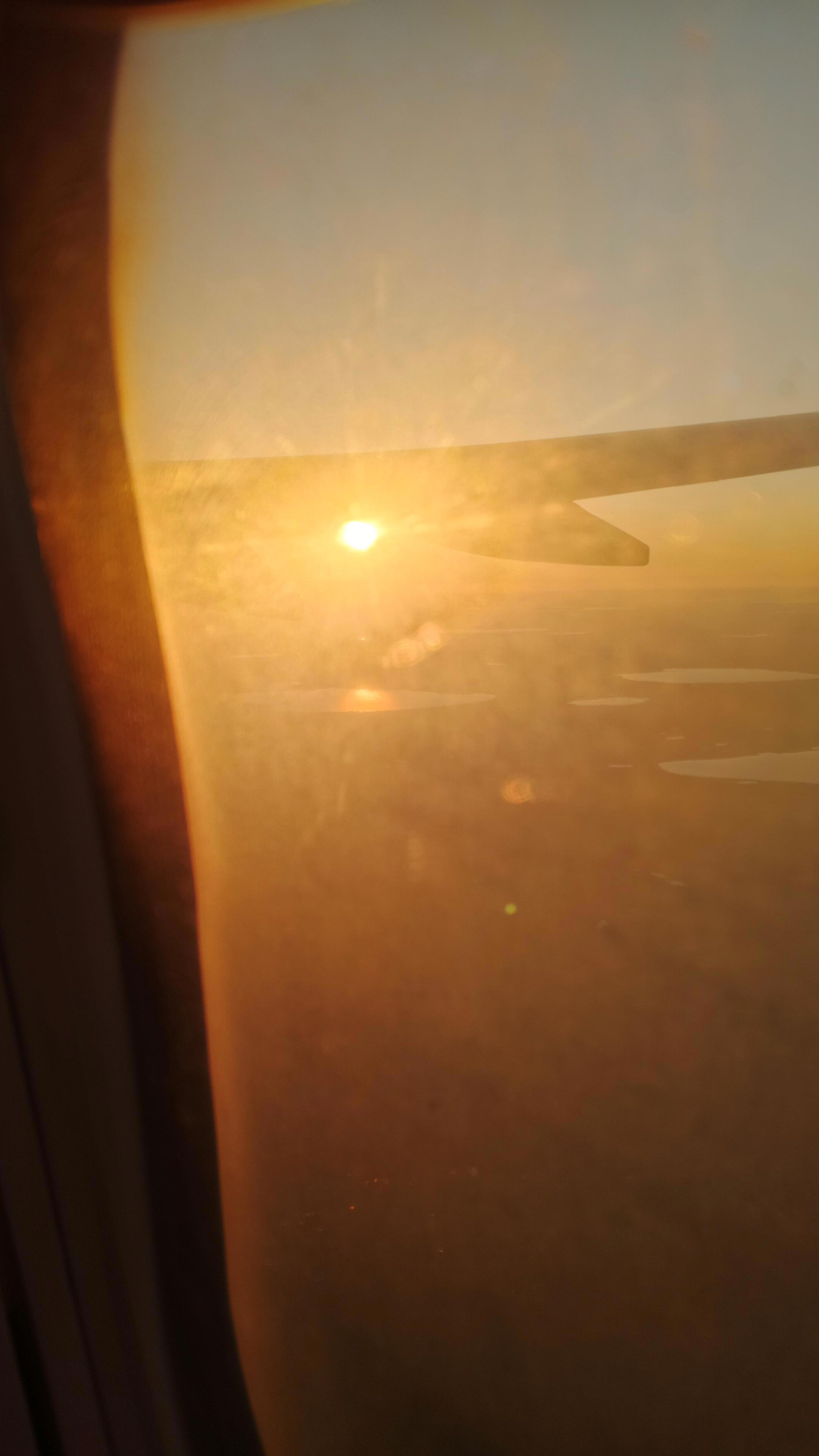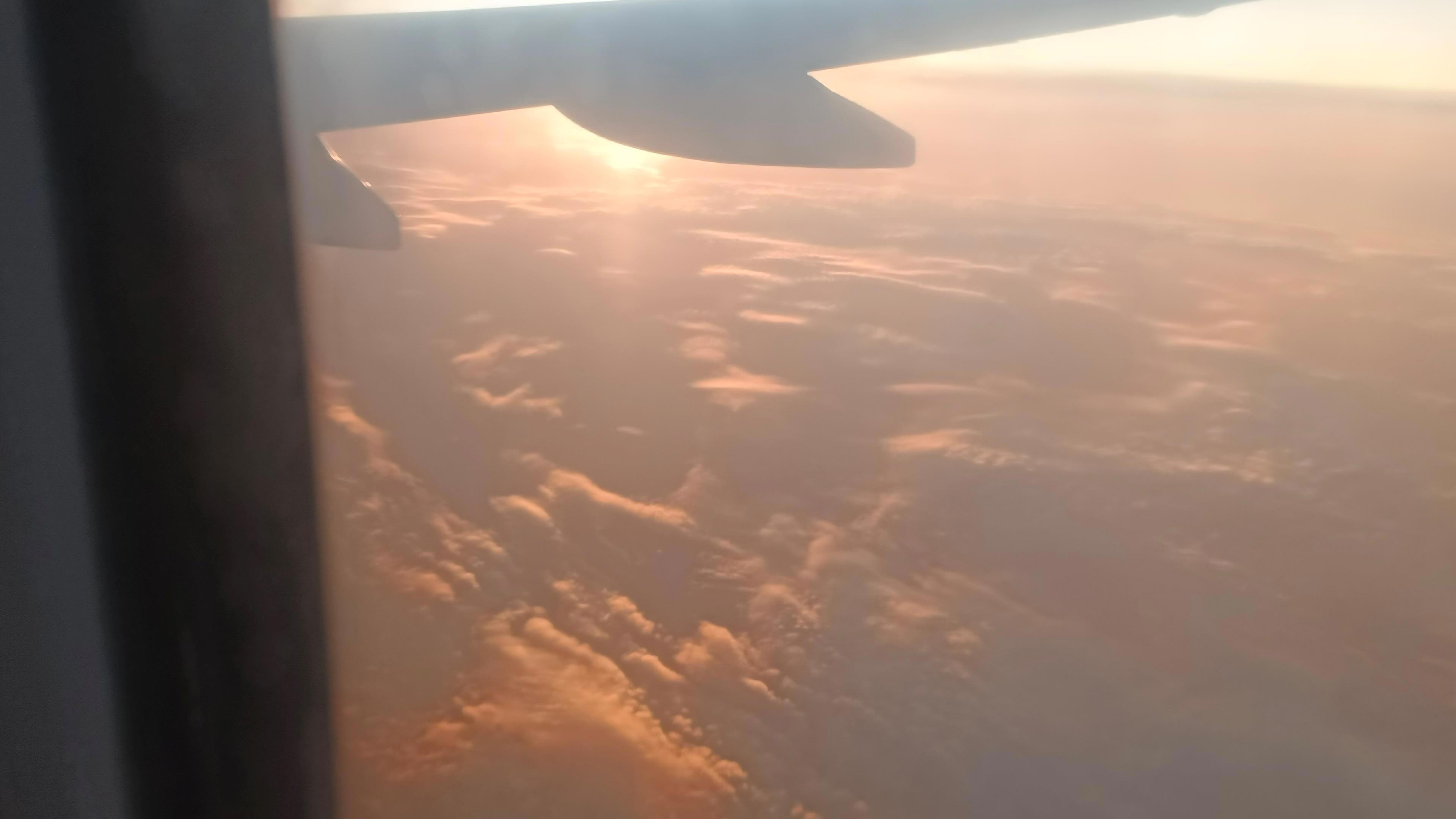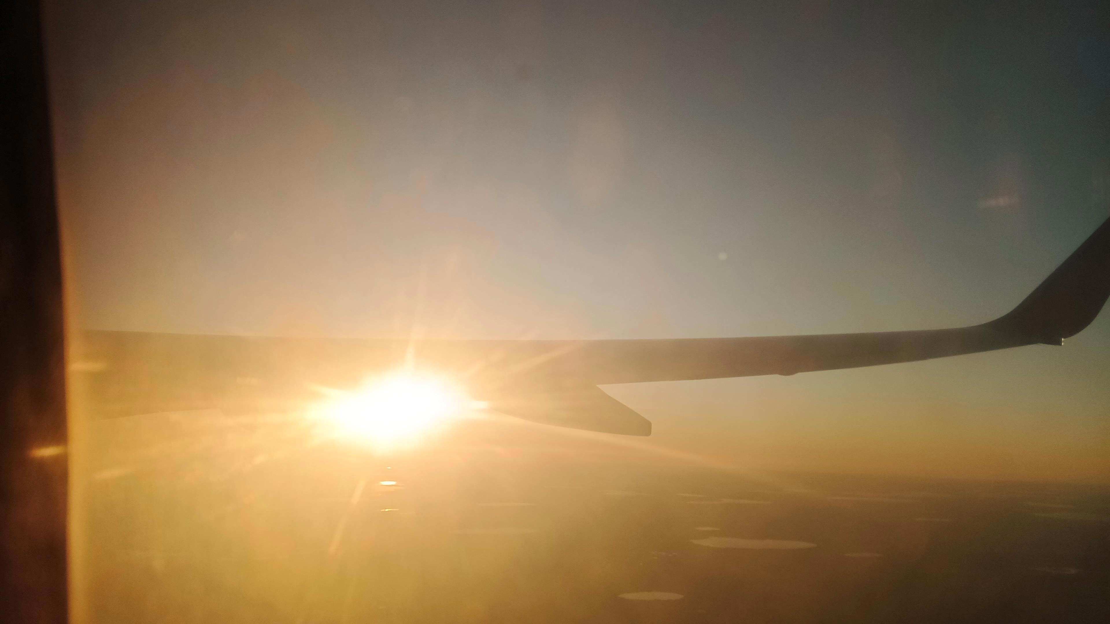 Летели мы на запад. И весь полет солнце было на крыле самолёта. Красиво!