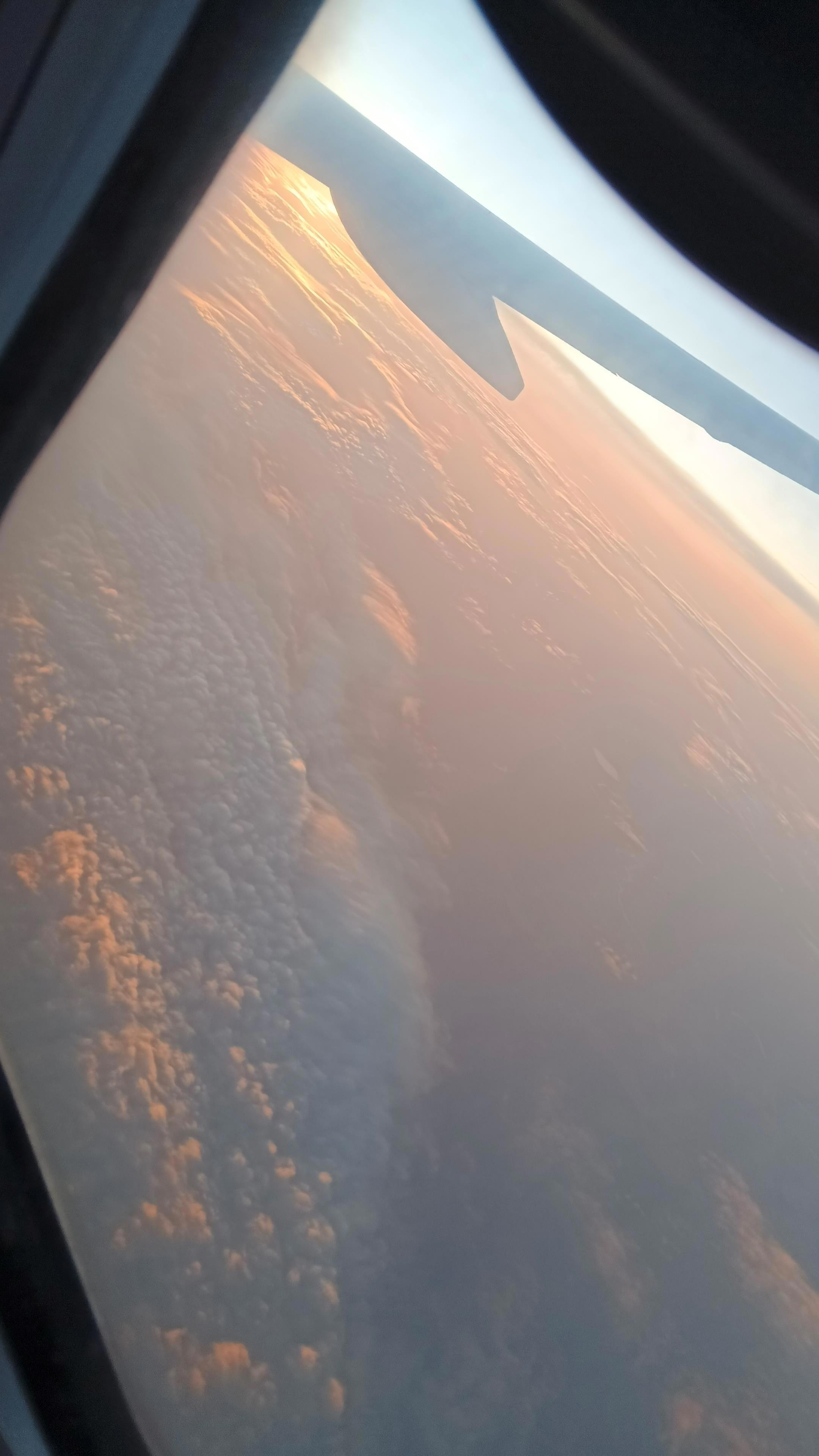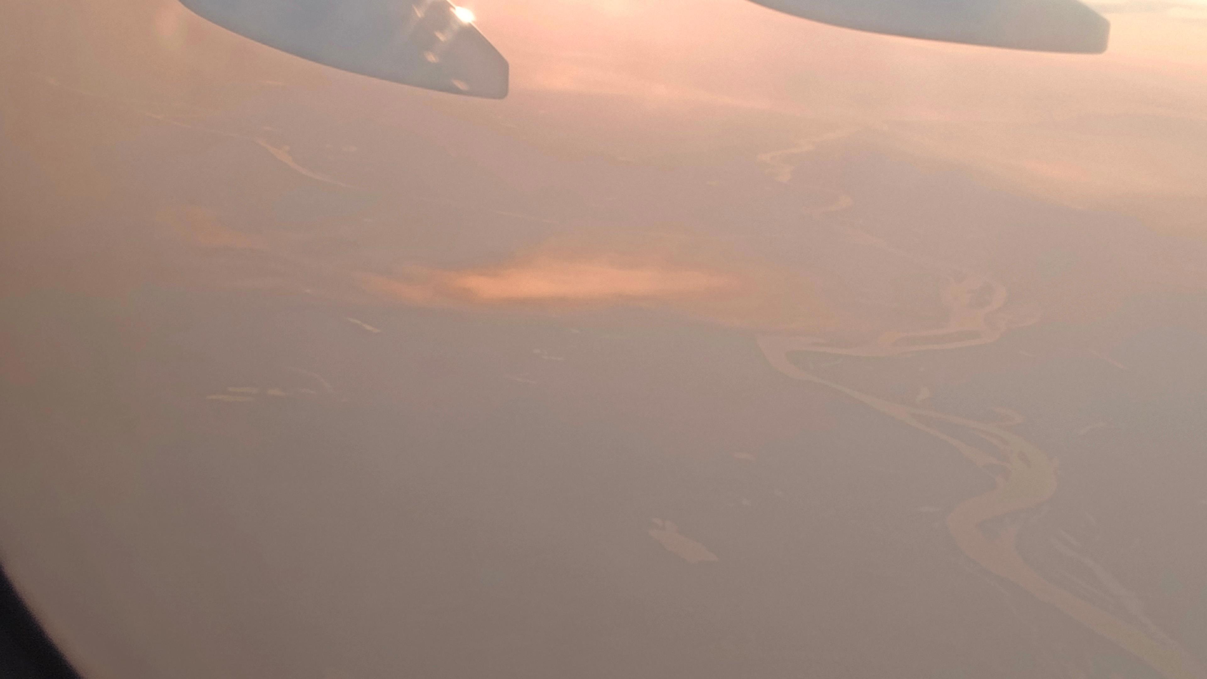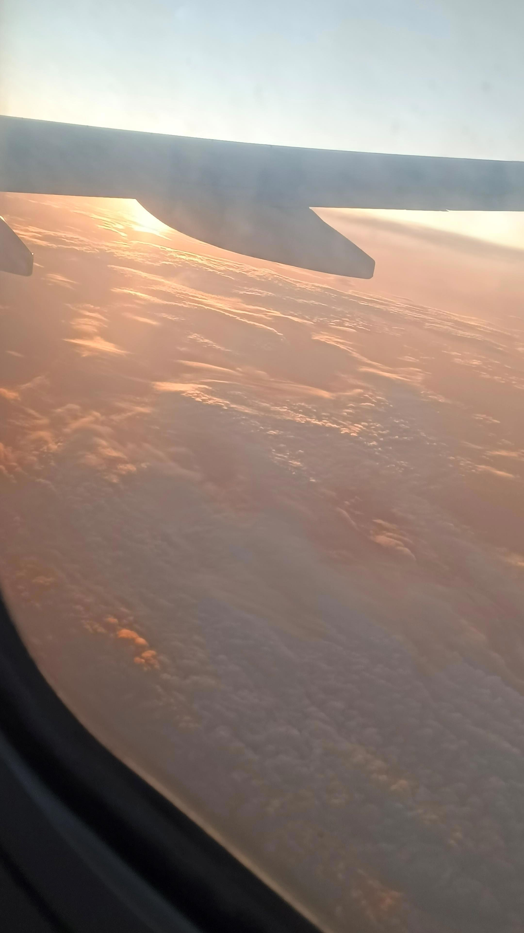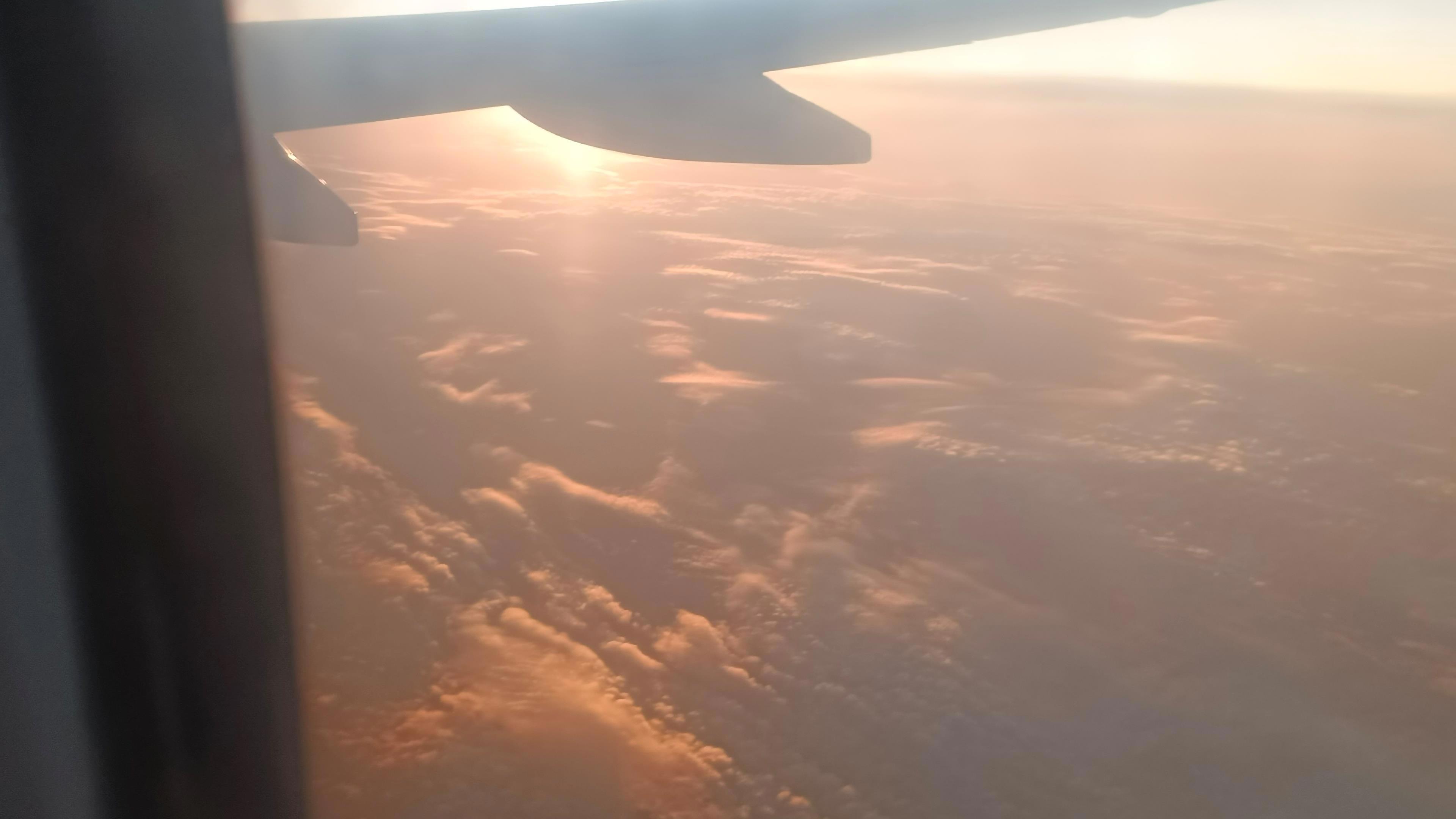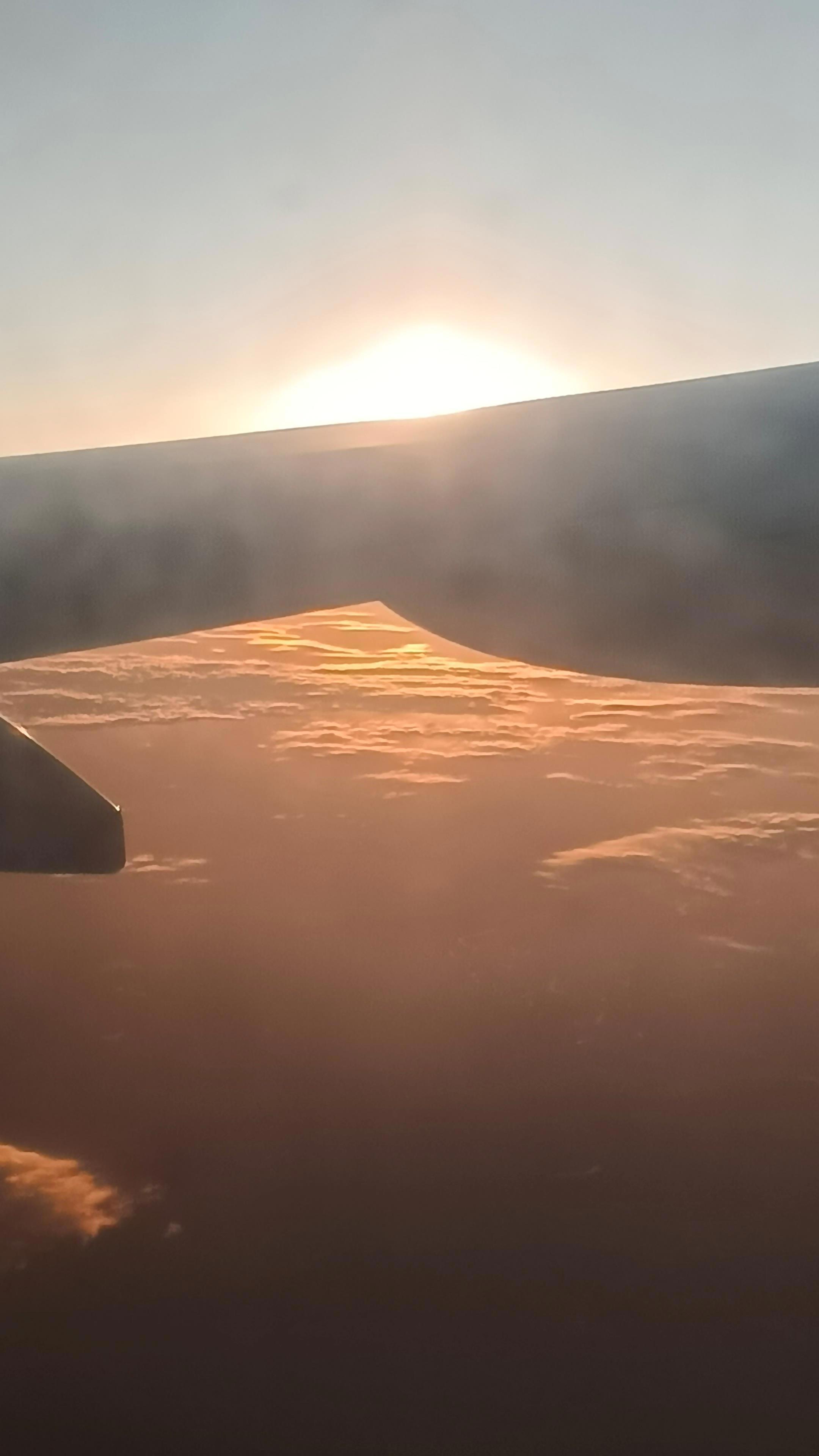 Летели мы на запад. И весь полет солнце было на крыле самолёта. Красиво!