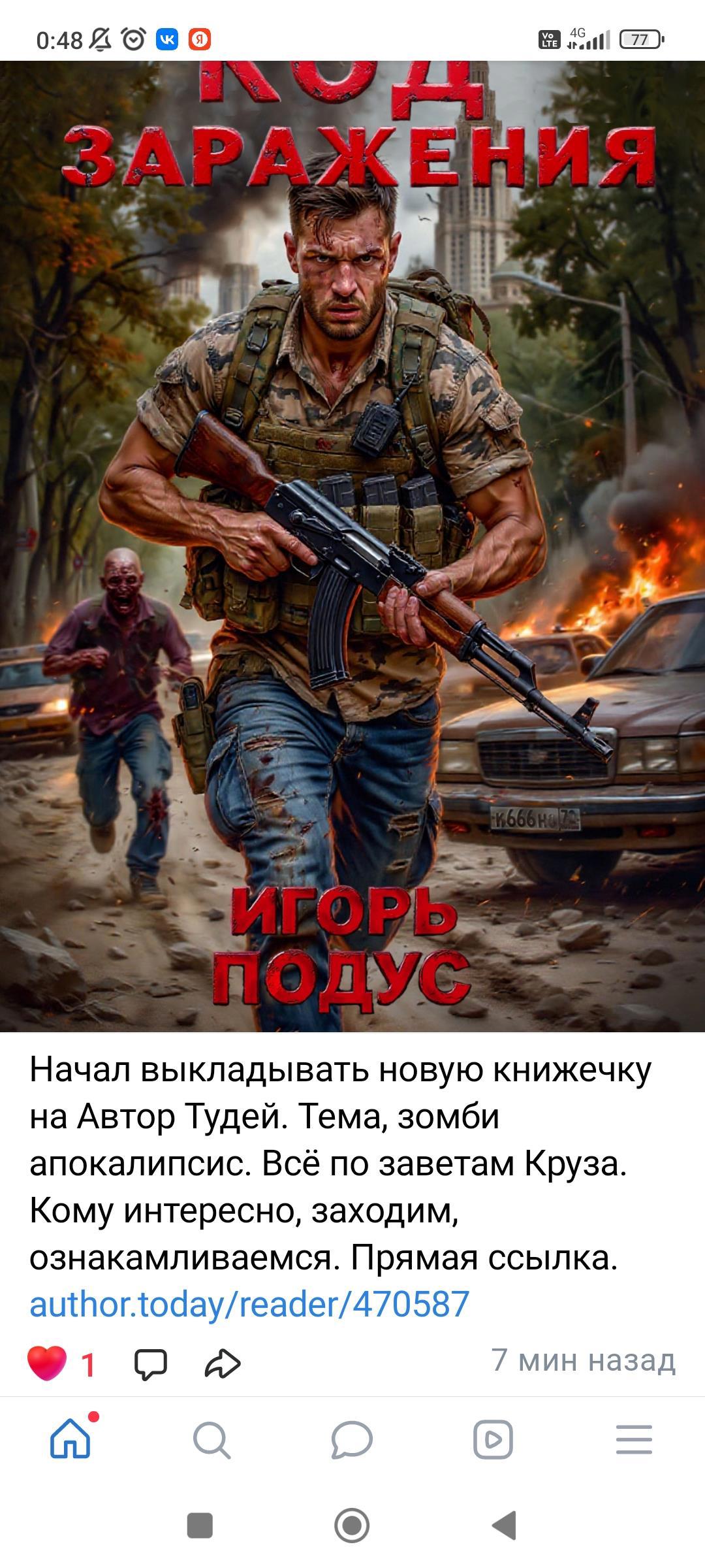 Пока дописываю главу "Аквамарина", предлагаю вам заглянуть в книгу – мой любимый жанр постапокалипсис (реально наткнулся вчера в ленте ВК): https://author.today/work/470587