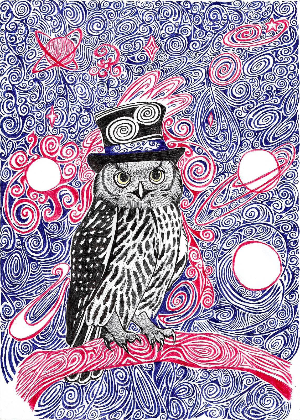 Как добрался до выделенного мне отсека, который представлял собой обычную каюту, не запомнил, зато очень четко вошел, закрыл дверь, разделся, лег и сразу уснул. И приснилась мне сова в цилиндре. Сова сидела на ветке, смотрела на меня ехидным взглядом желтых глаз и — я мог поклясться в этом — улыбалась.