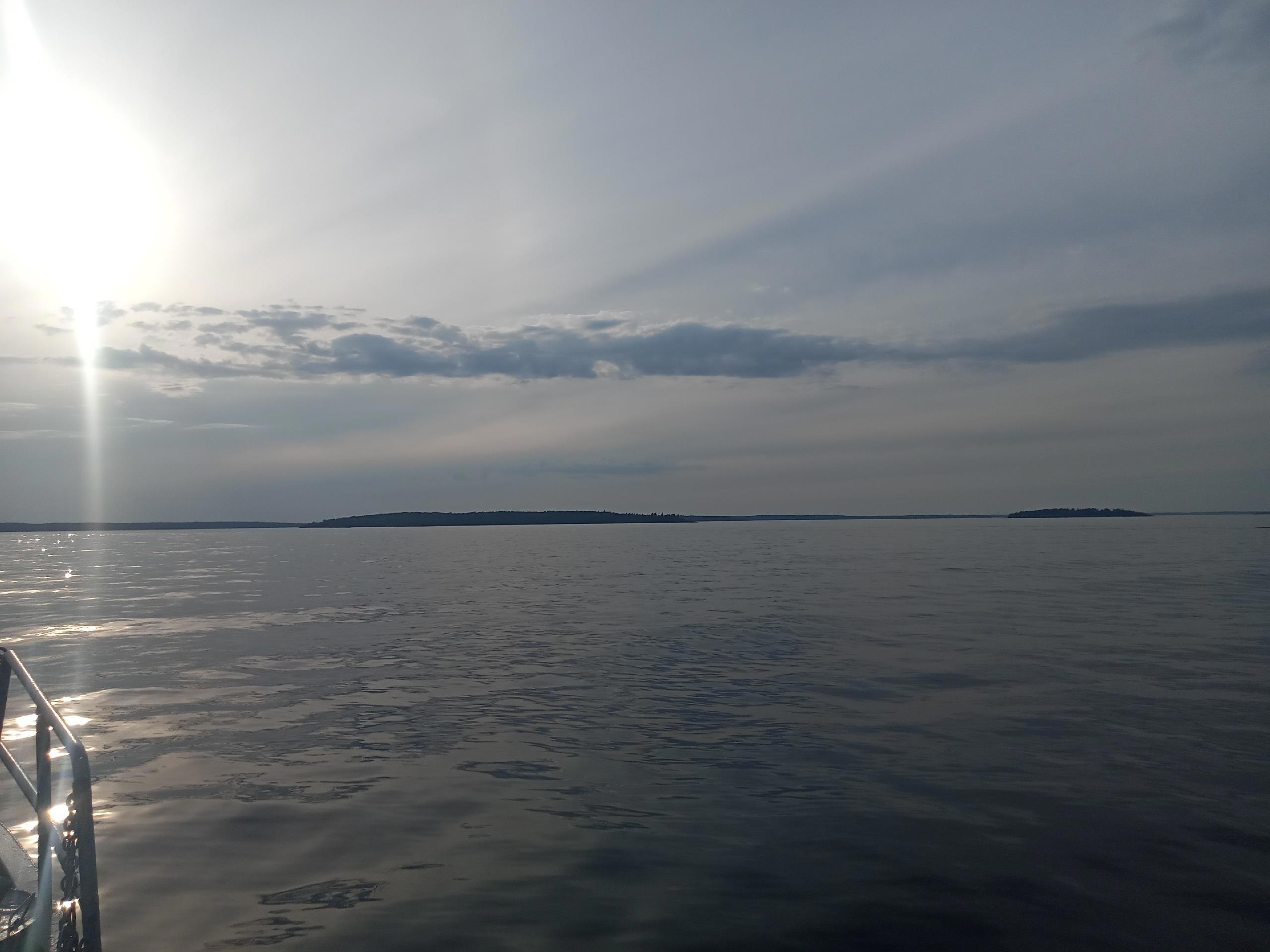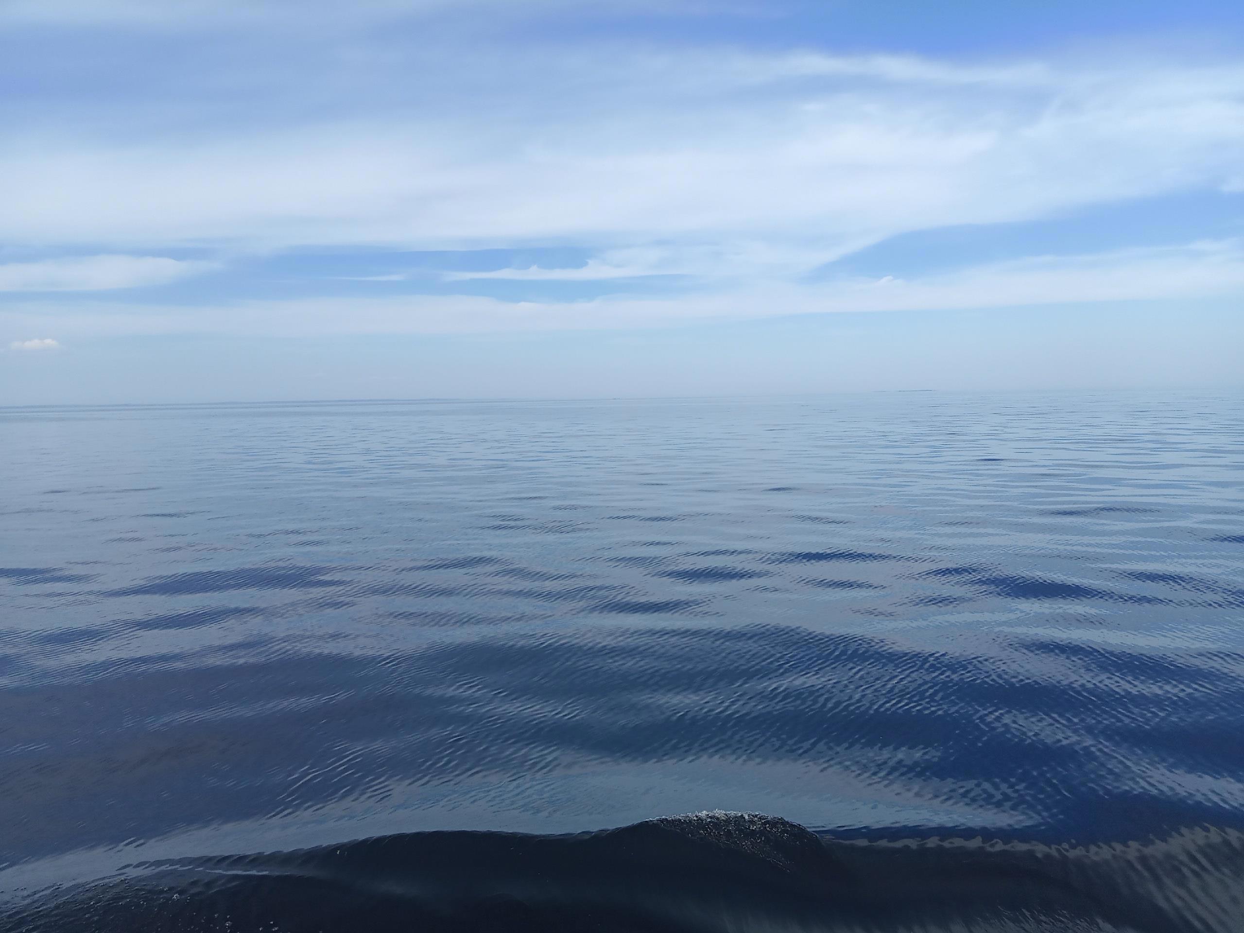 Погода снова поменялась, такая сильная облачность как вчера пропала, солнце опять стало светить ярче, ветер ещё больше ослаб, так еле-еле дул, волны почти не было, только рябь, однако свежесть никуда не делась, что опять же радовало, потому что интернет говорил, что на суше в это время было плюс двадцать восемь, а над водой меньше, двадцать три.