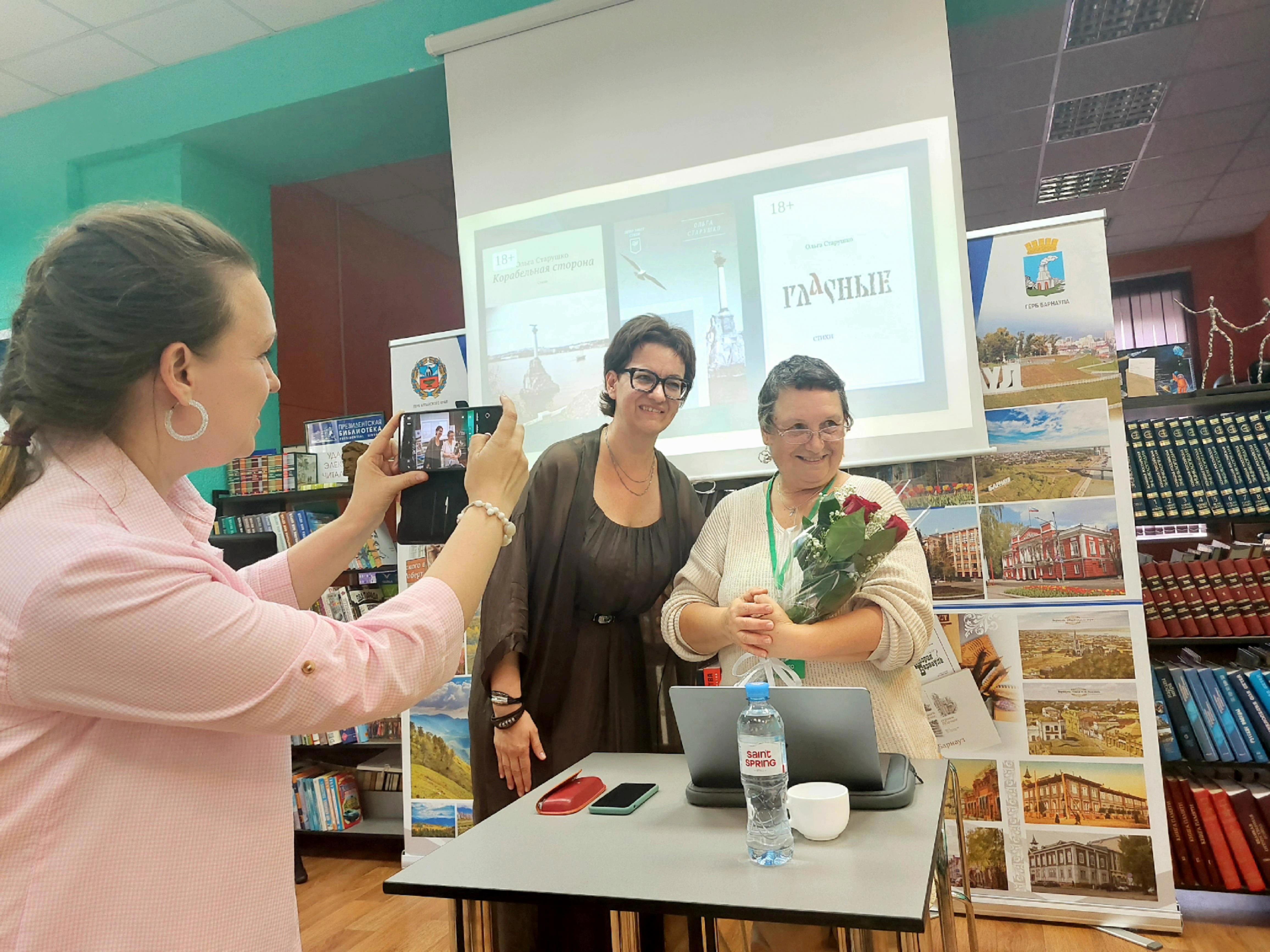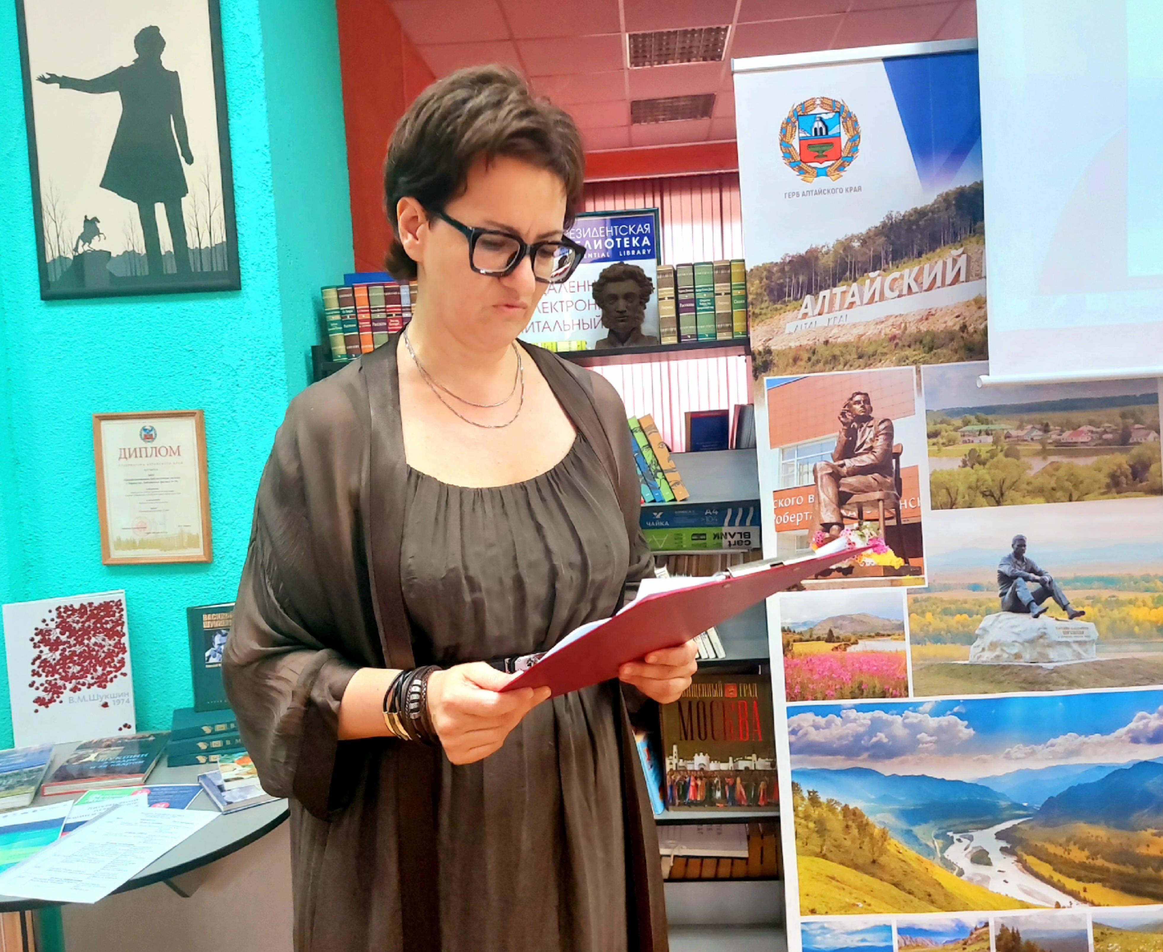 📢💟😍📖📚📝  22 июля программа «Литературный перекресток: Шукшин и вся Россия» стартовала в библиотеке им. А.С. Пушкина, это филиал № 10 ЦБС города Барнаула (пос. Южный, Алтайский край). Там при полном зрительском зале состоялась творческая встреча с поэтом Ольгой Старушко (Севастополь - Московская область).