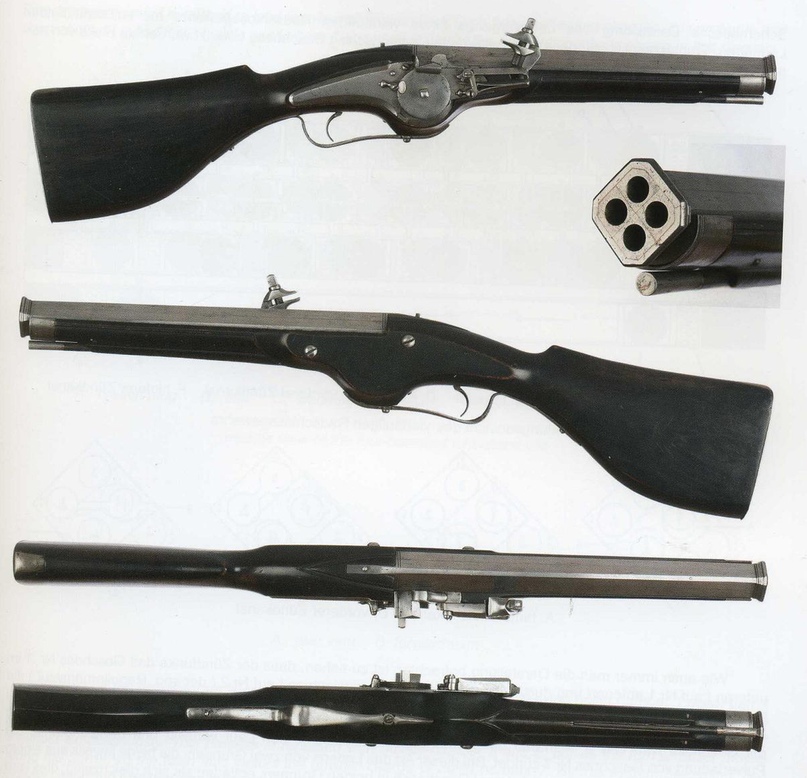 Есть камерные, револьверные кремнивые многозарядные ружья. Конечно вы сожете сказать что они трудны в обслуживании и не сравнятся с магазинными винтовками. Такими же магазинными как этот мушкетон последней четверти XVII века, и будете конечно абсолютно правы.