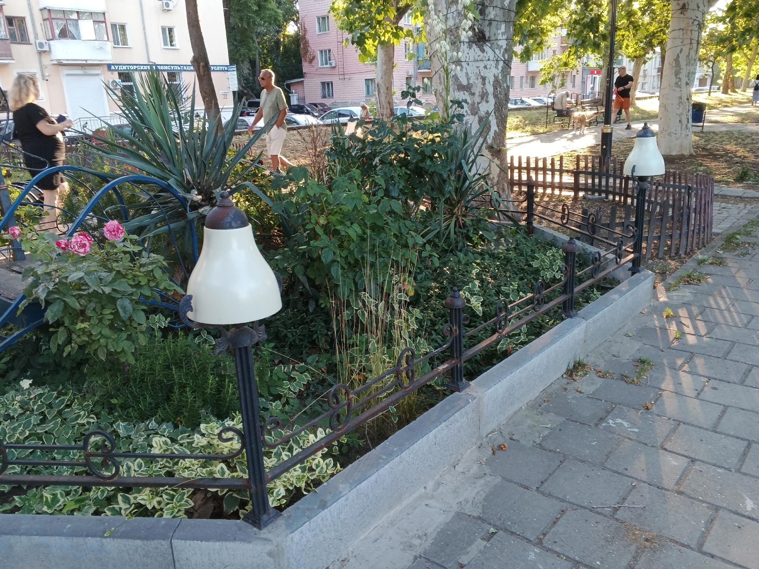 Заметьте какое красивое и изящное решение. Столик отделён от дороги и прохожих на тротуаре не забором, а очками, вместо стёкол в которых установлены жалюзи.