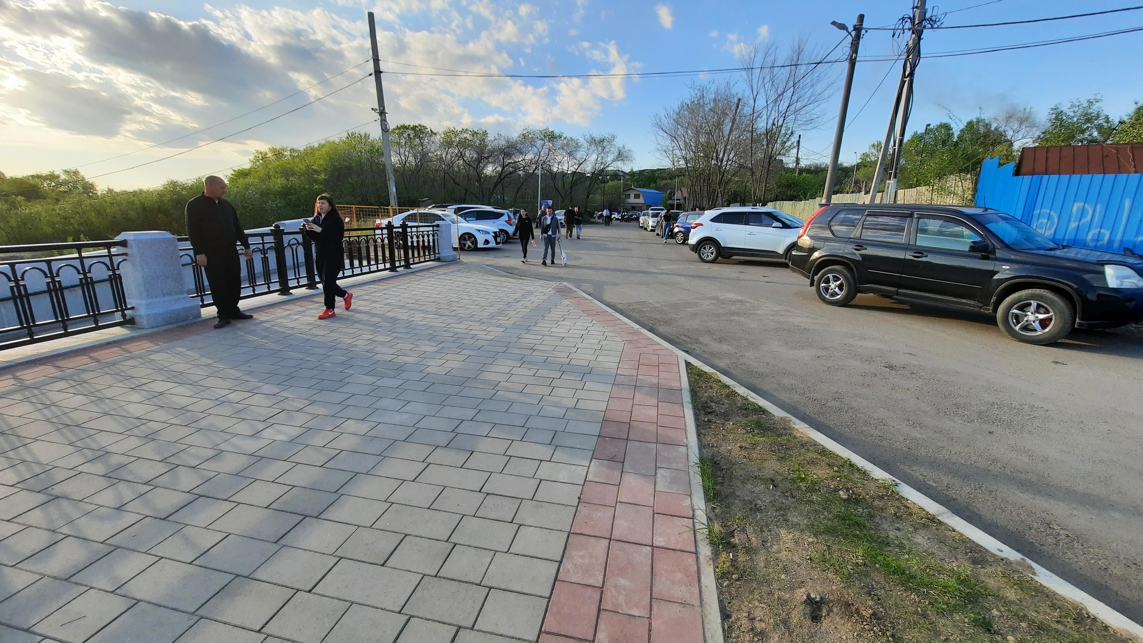 Само берегоукрепление и его гранитное оформление сдано довольно давно... а вот облагораживание отсыпанного участка продолжается и по сей день. (как я говорил здорово по экономике и срокам подпортило наводнение 13 года).