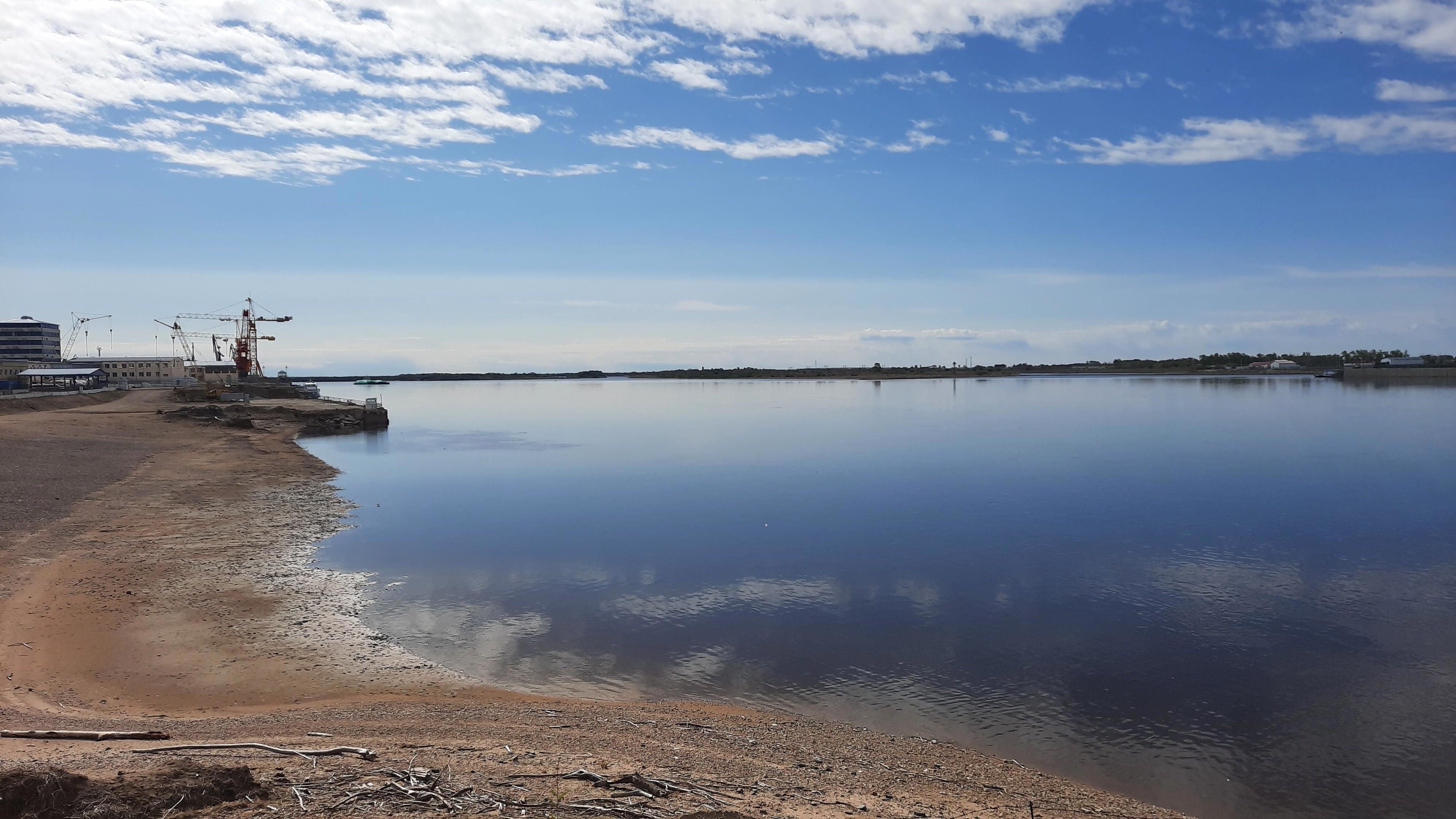 Также в заливе по веткам "плавняка" и отложениям ила видны "волны падения" уровня реки.