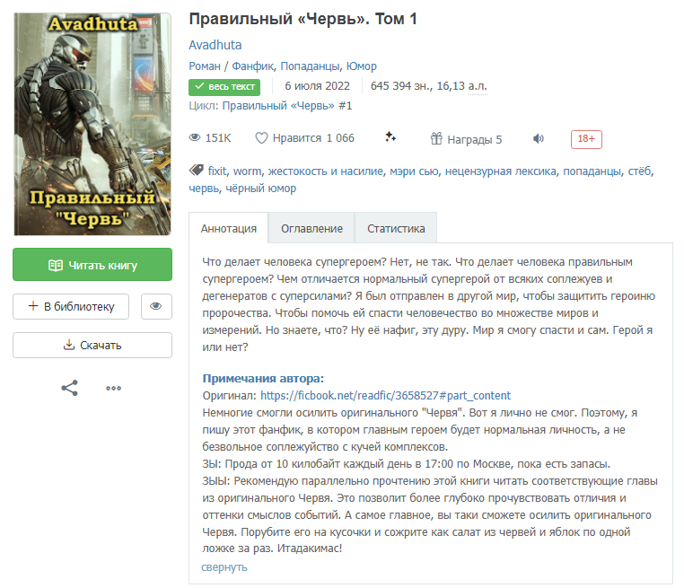 Оригинального «Червя» я, само собой, не читал и делать этого не собираюсь. Ничего зазорного в этом не вижу, тем более что автор фанфика сам не вывез этот челлендж. Ну да ладно, тренеры, как известно, сами не играют.