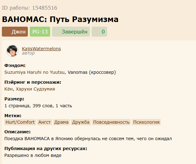 Да, ещё один момент. Не скидывайте мне в комменты свои фанфики, за бесплатно на волонтёрских началах я их читать не хочу, один хрен там в большинстве случаев пиздец будет поджидать. Нюхайте бебру с такими креативами. Единственное исключение сделаю только для Славы Танкова, по старой памяти. Весь остальной контент будет отбираться по рекомендациям от проверенных читателей, либо методом самостоятельного поиска.