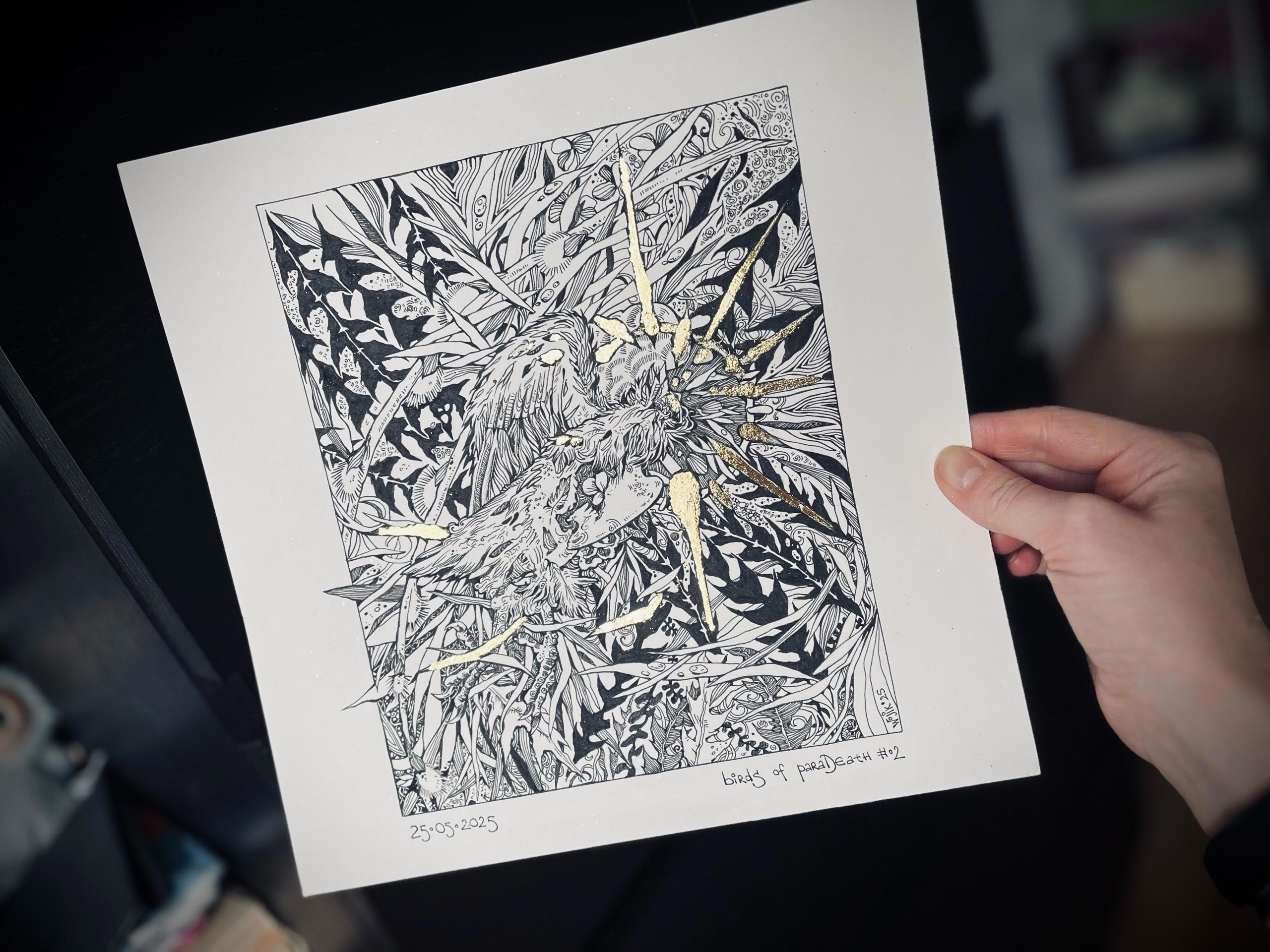 Так вот, месяца два назад, гуляя со своей собакой Ольга принялась рисовать мертвых птиц, которые попадались ей на прогулках.