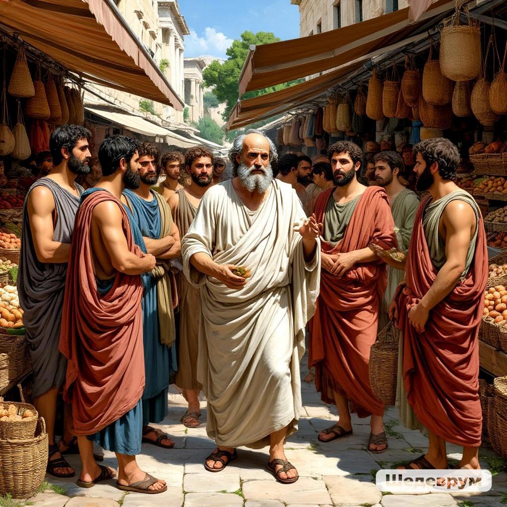 Мне нравится одна история о Сократе. Он практиковал прогулки с учениками по Афинам и затем обсуждение увиденного и услышанного. И вот однажды он повел учеников на рыночную часть Агоры. Таскал их по всем торговым рядам, рассматривал импортные вещи, коней, посуду, дорогие ткани... всё-всё-всё. Ученики, походив с ним, умотались и взмолились: