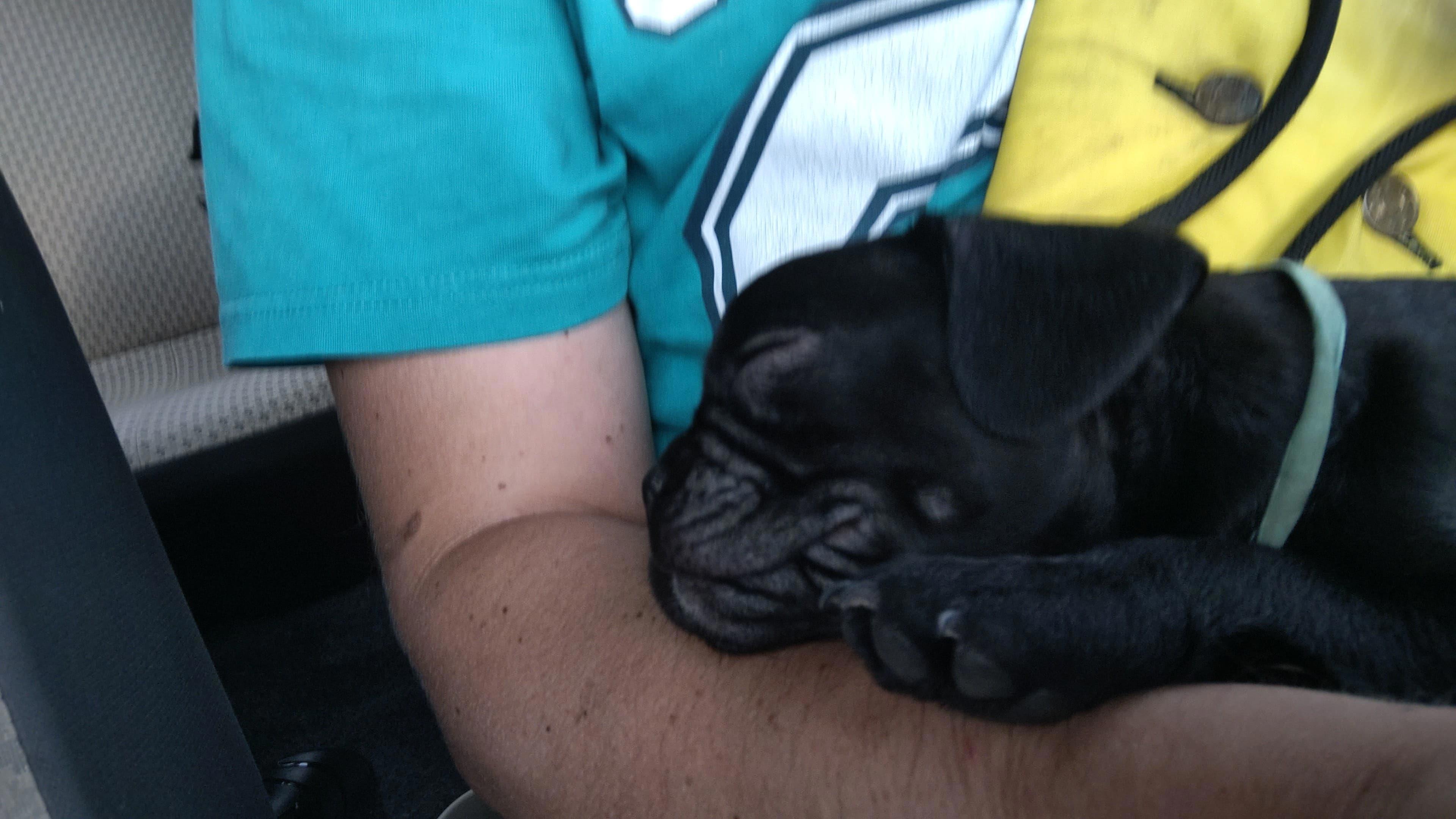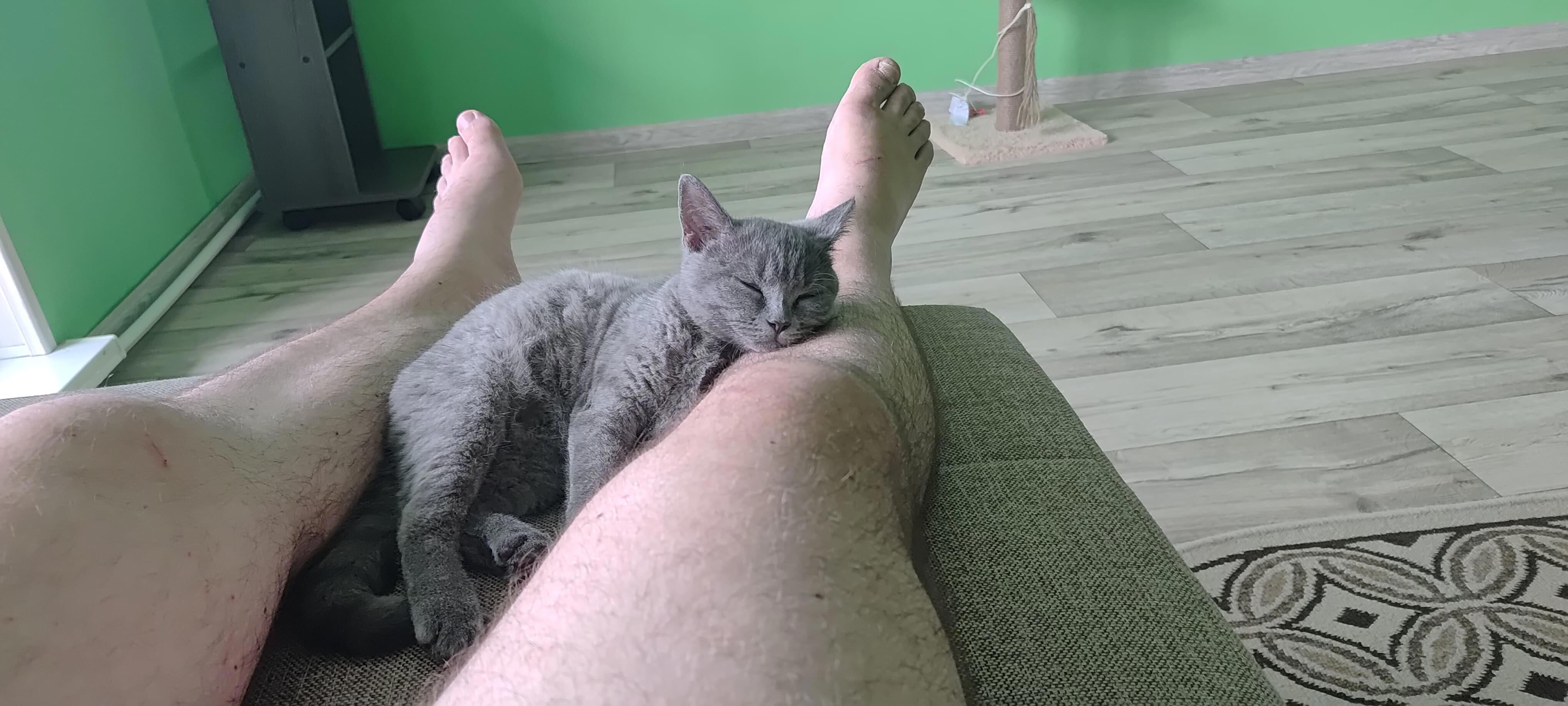 Какой Лёха? Чёрный как ночь, хрюкающий, пахнущий молоком и обожающий бегать за скакалкой и мячиком. Сфотографировать его почти невозможно, суета ещё та. То зевает, то отвернётся, то кошка... ах, да, кошка!