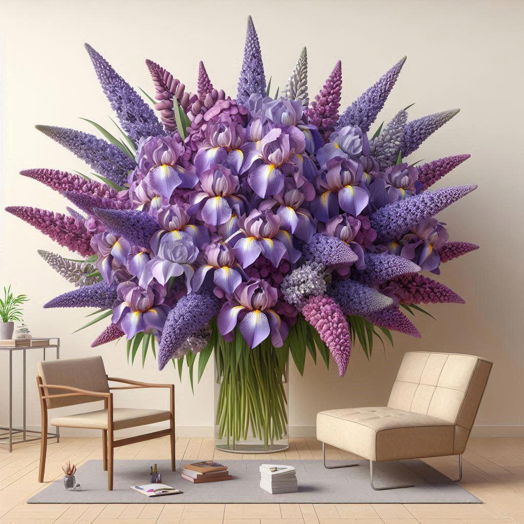 Огромный букет лиловых цветов в интерьере. А прост захотелось! (Copilot)