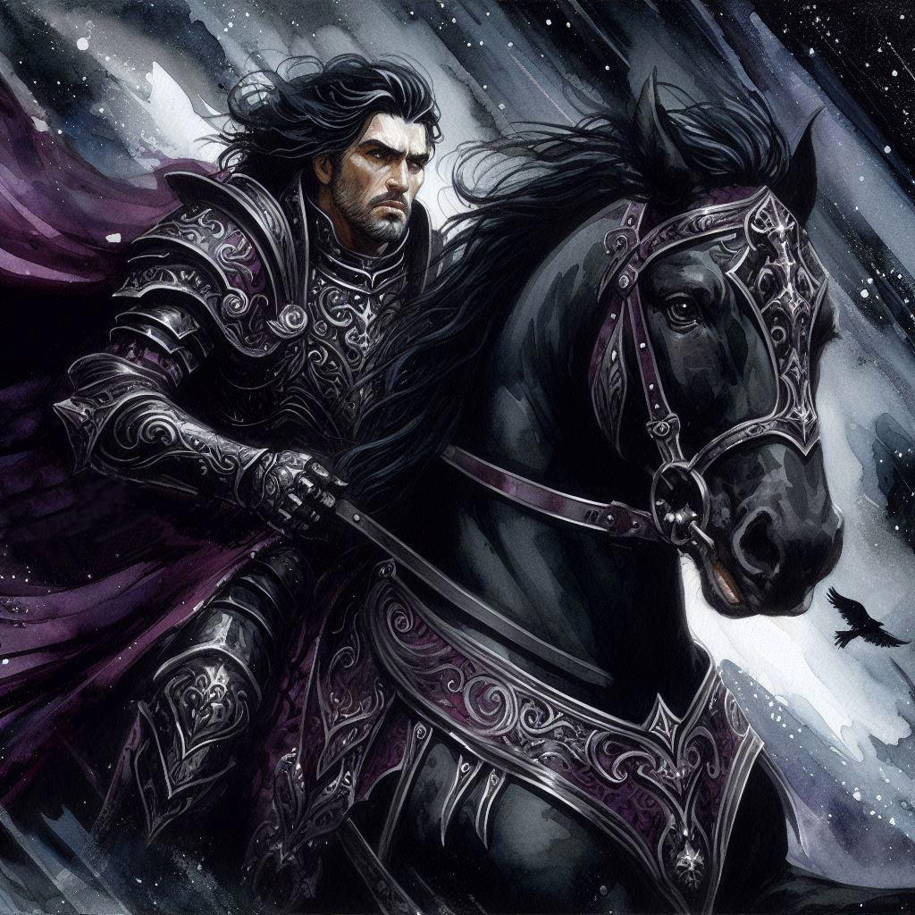 Ну и собственно фиолетовый рыцарь от нас с Бингом; у меня их еще осталось много после иллюстрирования "Мастера и Маргариты":