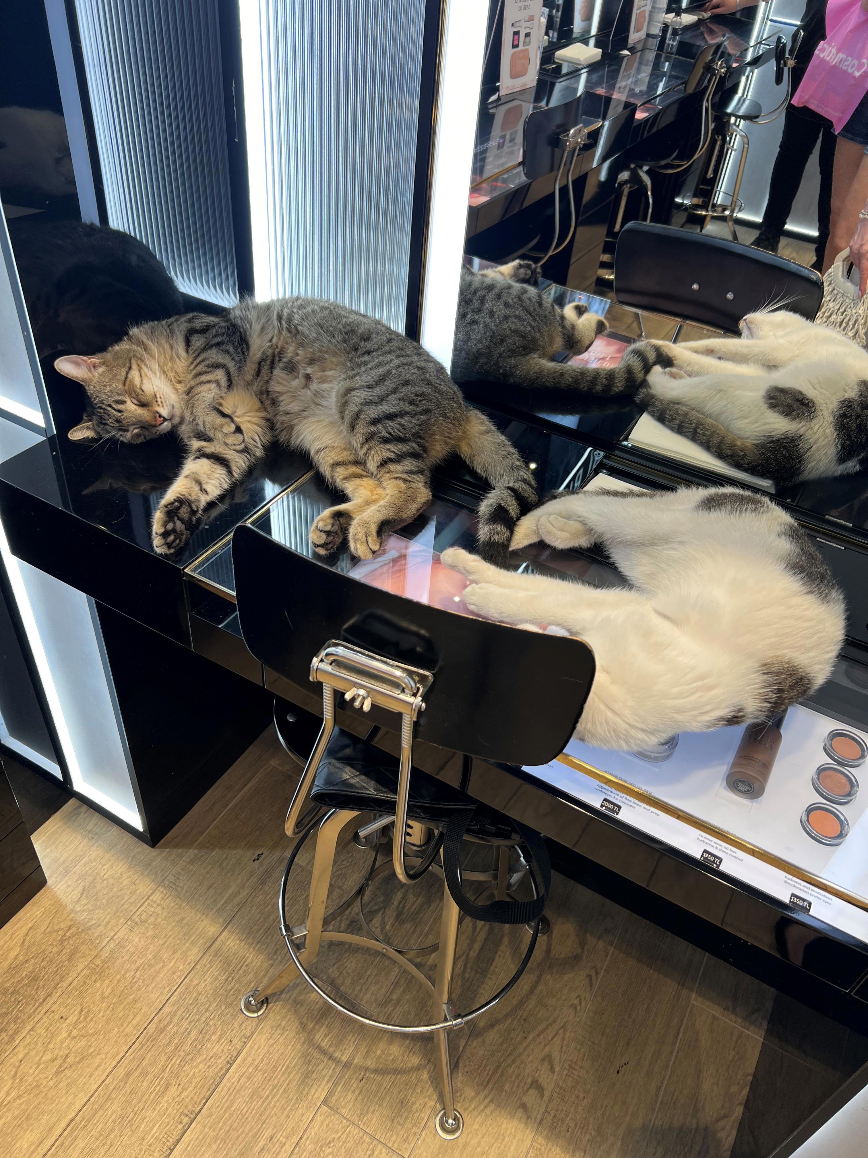 Нигде в мире я не видела котов настолько интегрированными в город - они буквально везде. То ловят тебя на турникетах в метро, то валяются в торговых центрах прямо на продающихся тряпках. Они в кафе, на налережной, на окнах и машинах.