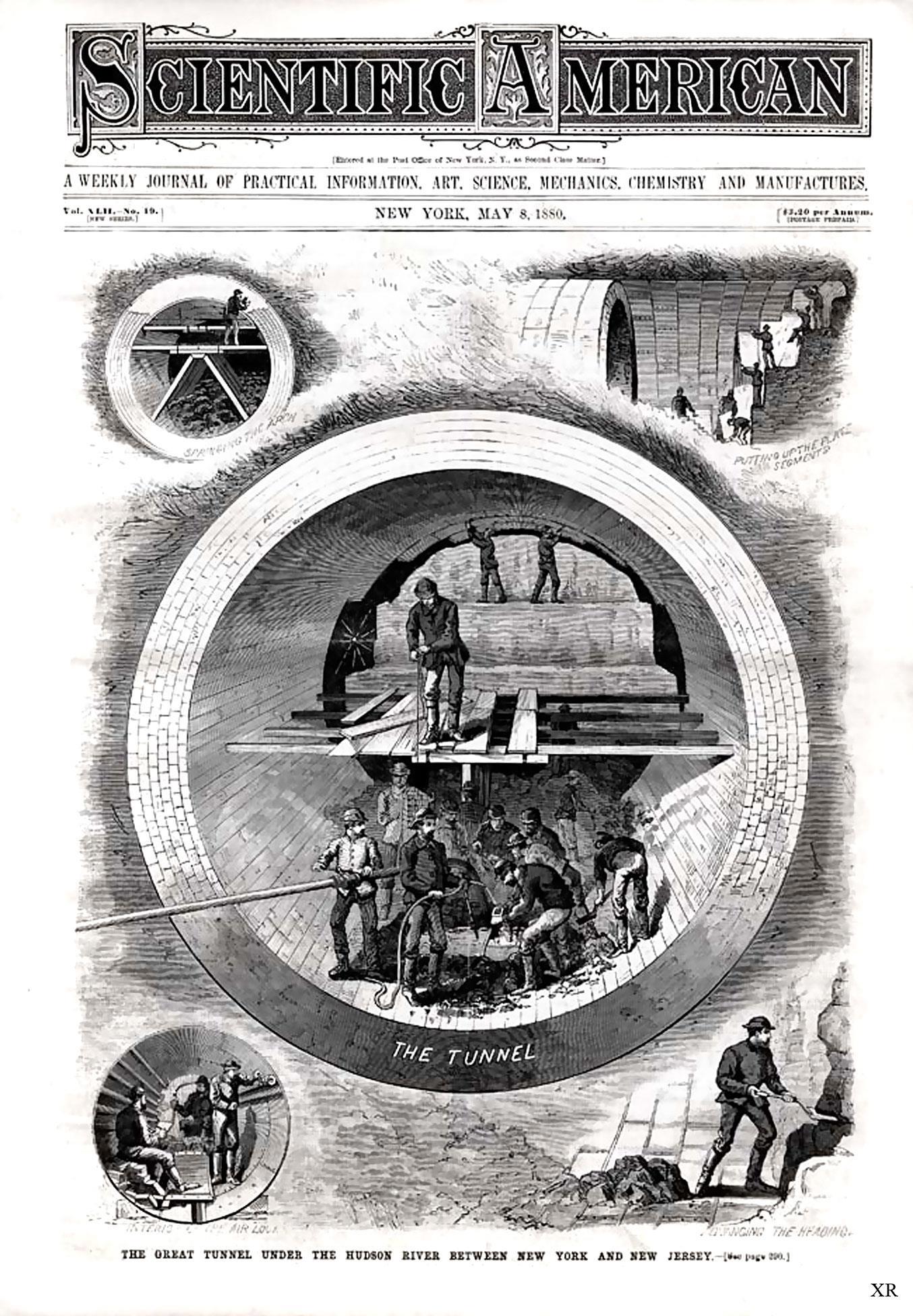 Ну, а это строительство туннеля между Нью-Йорком и Нью-Джерси под рекой Гудзон, я так понимаю для пассажирского сообщения. Кстати, через год после начала строительства он обрушился. Погибло несколько десятков рабочих. Потом все же туннель достроили, но только в 1910 году.