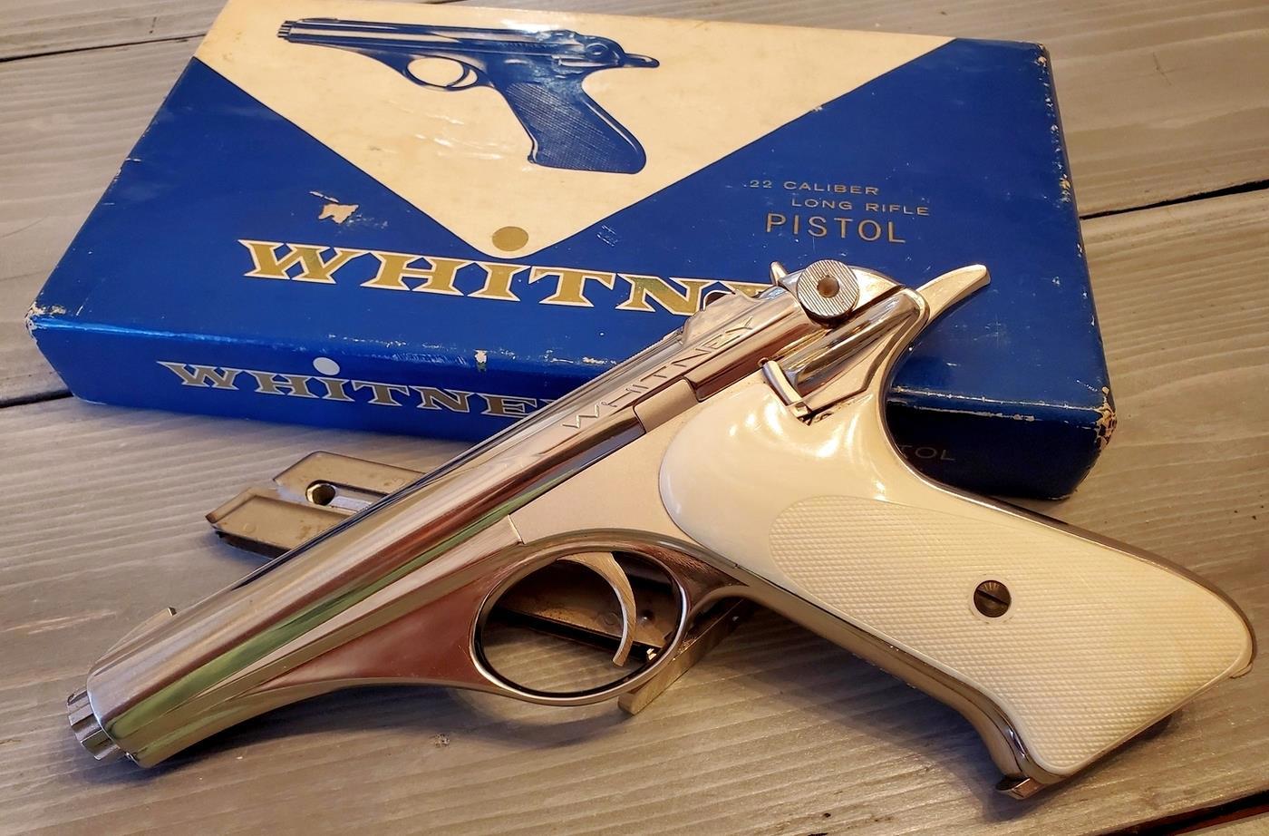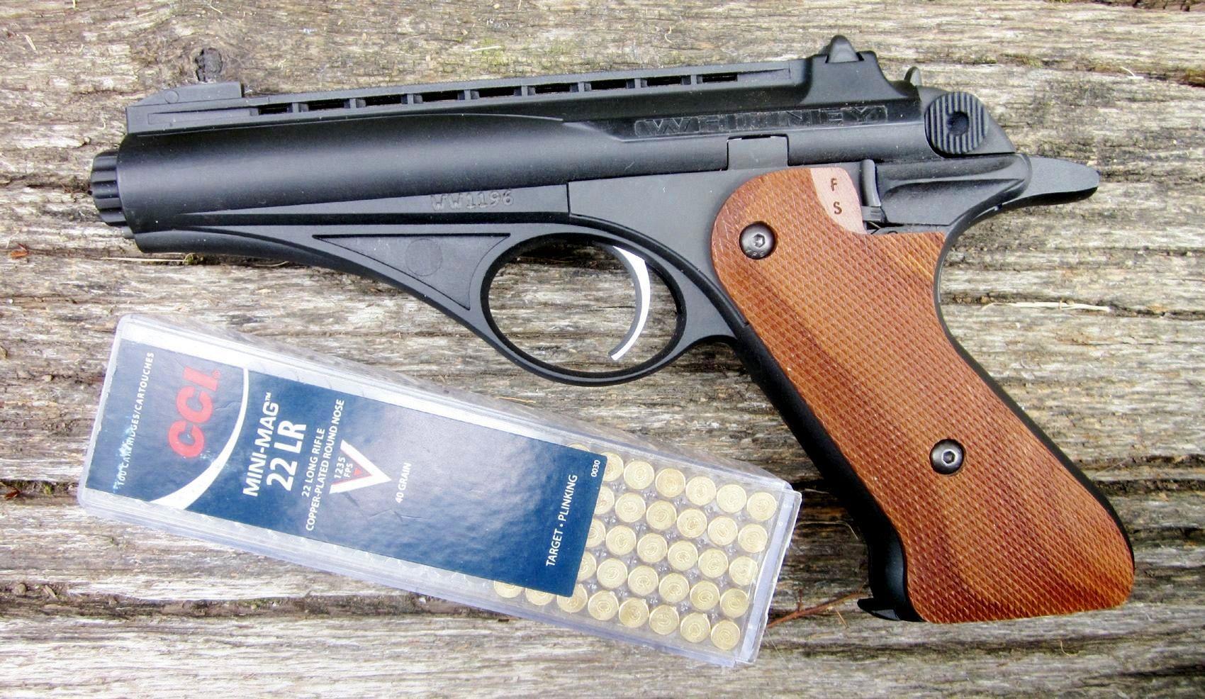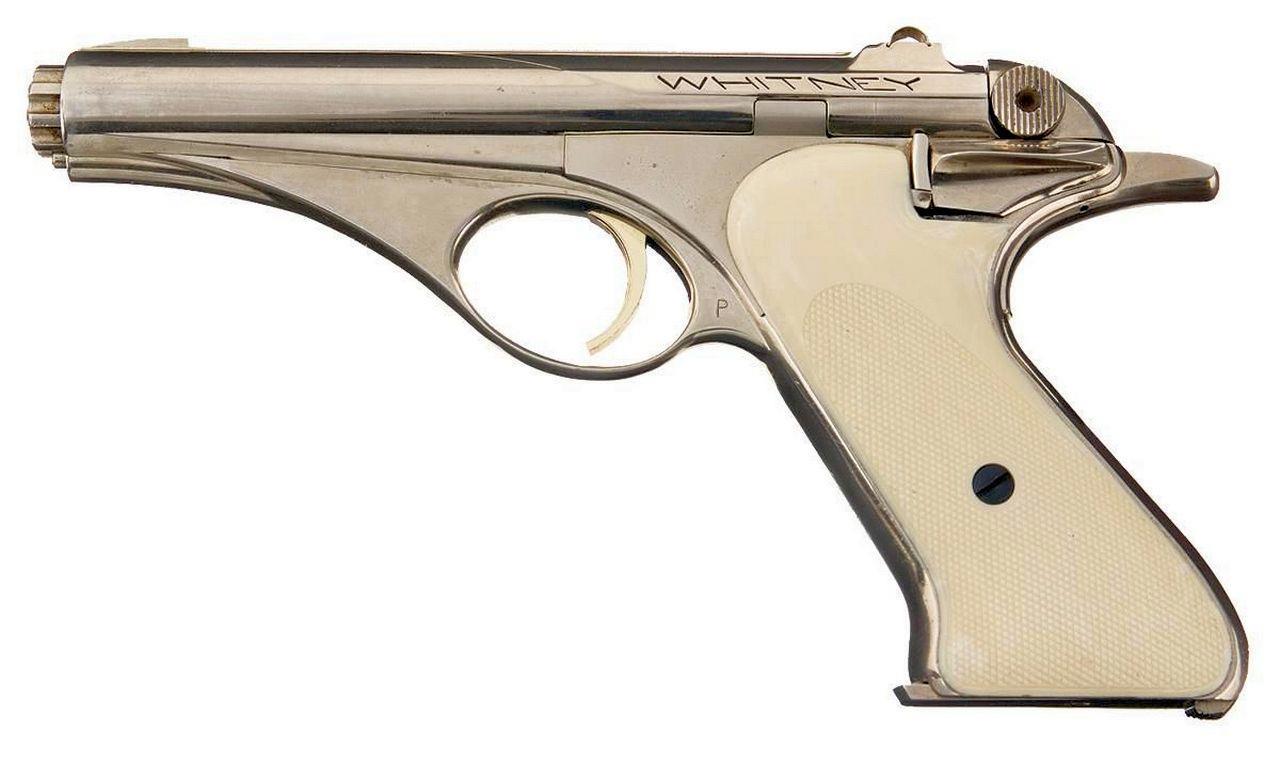 Это конечно же мужской вариант пистолета «Whitney Wolverine» in .22LR из-за преобладания тёмного в колере. Однако есть и промежуточный вариант в стиле «супертехно» с дульным компенсатором: