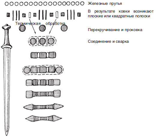 Технологическая схема изготовления подобных мечей могла быть следующая: