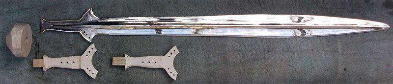 Отковав клинок заданного размера, вытягивали черенок рукоятки. Следующей механической операцией было выстругивание долов. Затем клинок шлифовали и подвергали термической обработке. После этого клинок полировали, и если на основе клинка делалась узорчатая сварка, его травили. Кузнец же делал и основу перекрестья и навершия рукоятки. Иногда наваренные стальные лезвия подвергались перед термической обработкой дополнительной цементации. Применялась также цементация поверхности цельножелезного меча.