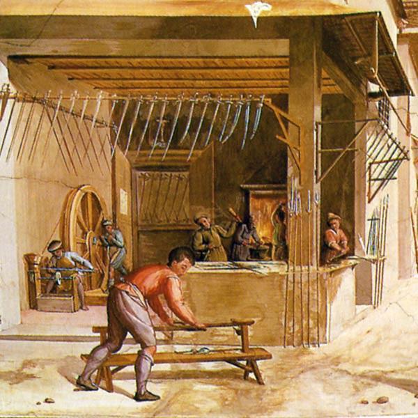 Упругие, но мягкие клинки 16 века тупились буквально "о воздух". Весь свой досуг солдаты вынуждены были проводить с точильным камнем в руке. Но подобные клинки стоили очень дёшево и производились массово.