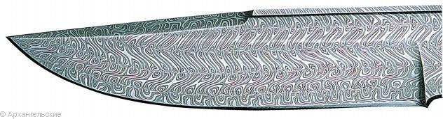 Разрез клинка выполненного по харалужной технологии.