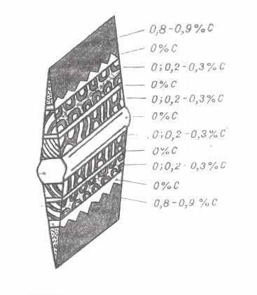 Как уже говорилось ни железо, ни сталь сами по себе для изготовления оружия и доспехов не годились. Изделия из чистого железа выходили слишком мягкими, а из чистой стали - слишком хрупкими. Комбинируя стальные заготовки с разным содержанием углерода с последующей сваркой, складыванием и проковкой, кузнецы добивались контроля над свойствами получаемого материала. Железо, как правило, мягко и легко поддаётся деформации, высокоуглеродистая сталь же тверда и (при надлежащей термообработке) упруга. Комбинируя железо и высокоуглеродистую сталь, получали материал, который дополнял недостатки обеих исходных материалов. Так возникала технология чередование слоёв металла с очень высоким и очень низким содержанием углерода. Первые при закалке приобретали большую твёрдость, а вторые, напротив, не закаливались вовсе и служили амортизирующей подложкой. Мягкие железные слои не давали клинку быть слишком хрупким, а высокоуглеродистые слои придавали нужную упругость и остроту. Диффузия углерода также усредняла в какой-то мере его распределение в заготовке. Так что, чтобы изготовить, например, меч, приходилось делать "бутерброд" из двух пластин железа, между которыми закладывалась стальная пластина. При заточке мягкое железо стачивалось, и появлялась стальная режущая кромка. Упругость такими мерами не достигалась, но хотя бы удавалось достичь объединения прочности и твердости изделия. Эта технология предусматривала сварку ковкой полос чистого железа и стали. В результате получался гибкий, но твёрдый клинок. Подобная технология изготовления клинков называлась сварная.