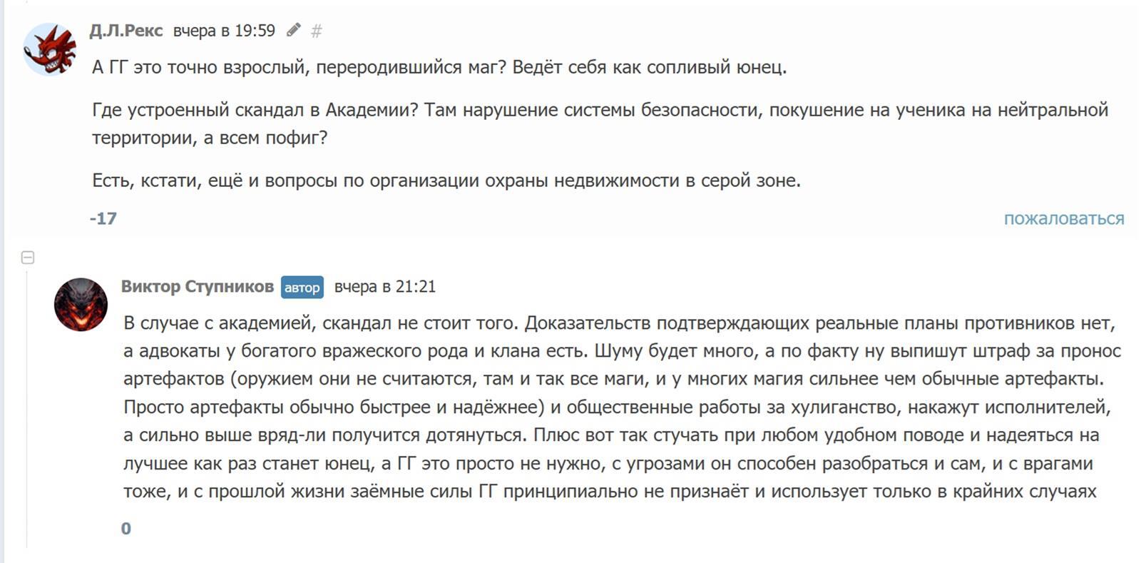 Зашёл в очередной раз по рекомендашке на полях хорошего автора на это поделие: https://author.today/work/470493 Почитал. Понял, что это очередная жвачка для безмозглых школьников. Ну и не удержался от критики, потому что слог автора понравился, а вот поступки его героя нет. Так что я преодолел лень и написал, что довольно редко себе позволяю.