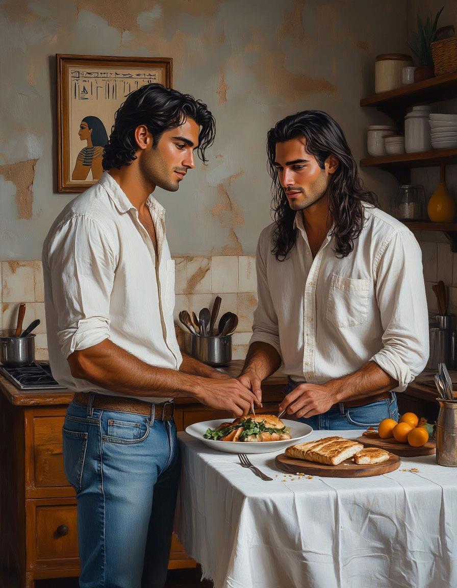 Мужчины в тишине готовили обед, когда в дверях появился еще сонный Сахемхет. Вид у него был помятый и измученный, словно после хорошей корпоративной вечеринки. Первым его заметил Шери.