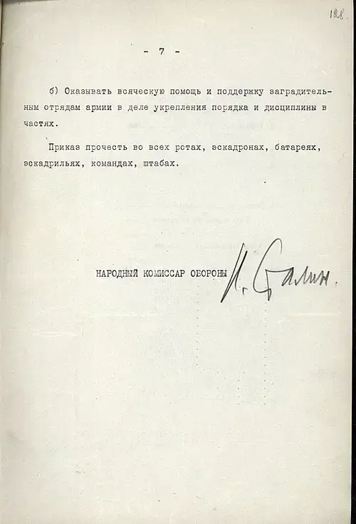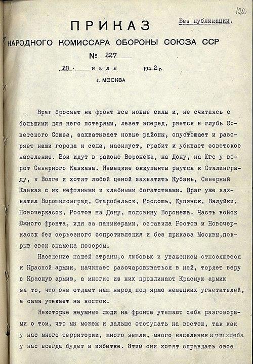 Отныне железным законом дисциплины для каждого командира, красноармейца, политработника должно являться требование — ни шагу назад без приказа высшего командования.