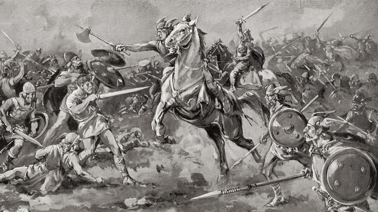 И римляне готовы принять свою судьбу достойно, не посрамив предков, и уйти вслед за ними во тьму, превратившись в свой черед в "героев века", которых будут прославлять потомки. Этот боевой призыв, безусловно, отсылает к знаменитой «битве народов» – битве на Каталаунских полях, в которой с полчищами гуннов столкнулись римские легионы и союзные им вестготские войска.