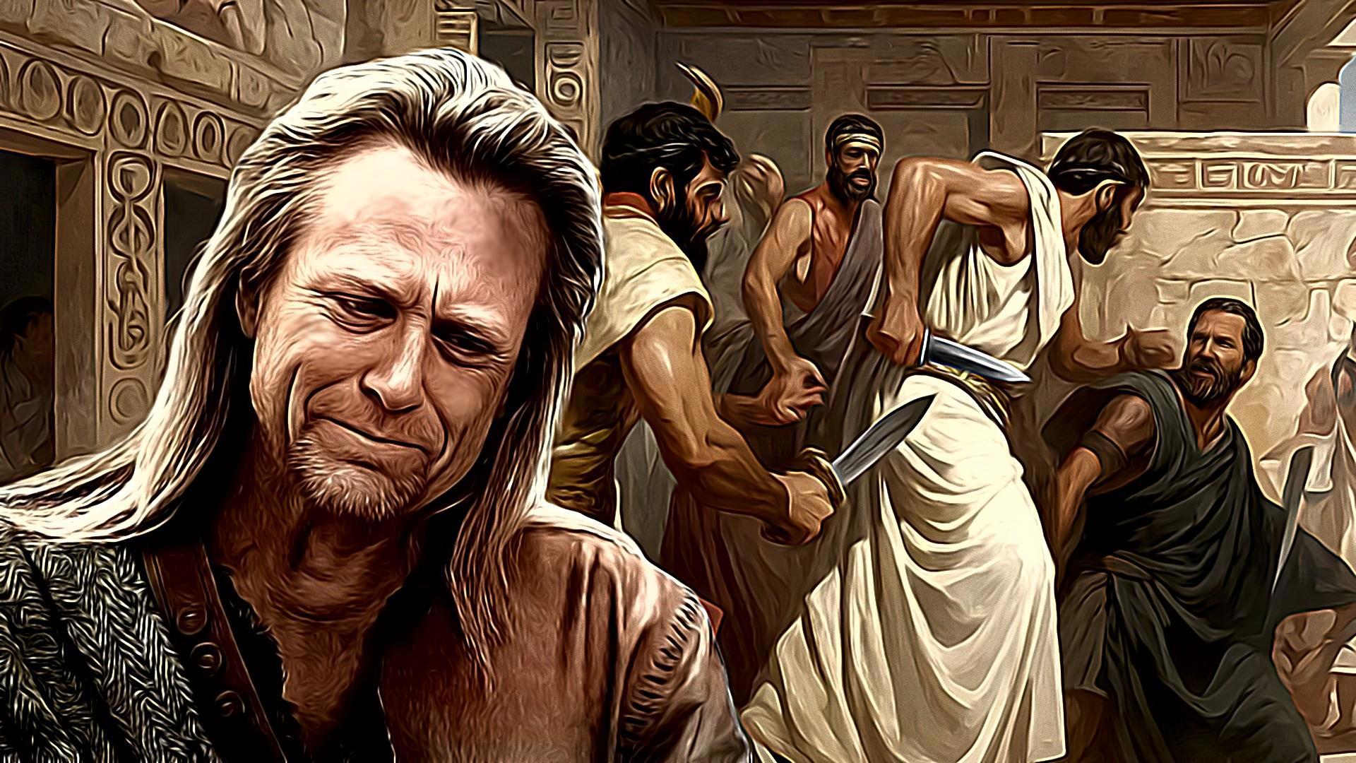 И тут Гилл, старший сын Геракла, уговаривает свою сестру Макарию принести себя в жертву ради "общего дела". Крыша у Гилла совершенно поехала на тему "вернуть наше". Мерзавец искусно манипулирует сестрой.