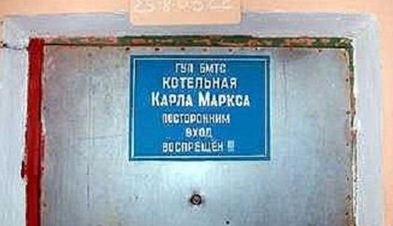 А тут вывеска раскрывает истинную сущность бородатого основоположника. Коммунизм он выдумал для других, а сам был махровым частным собственником! Даже никого в свою котельную не пускал: