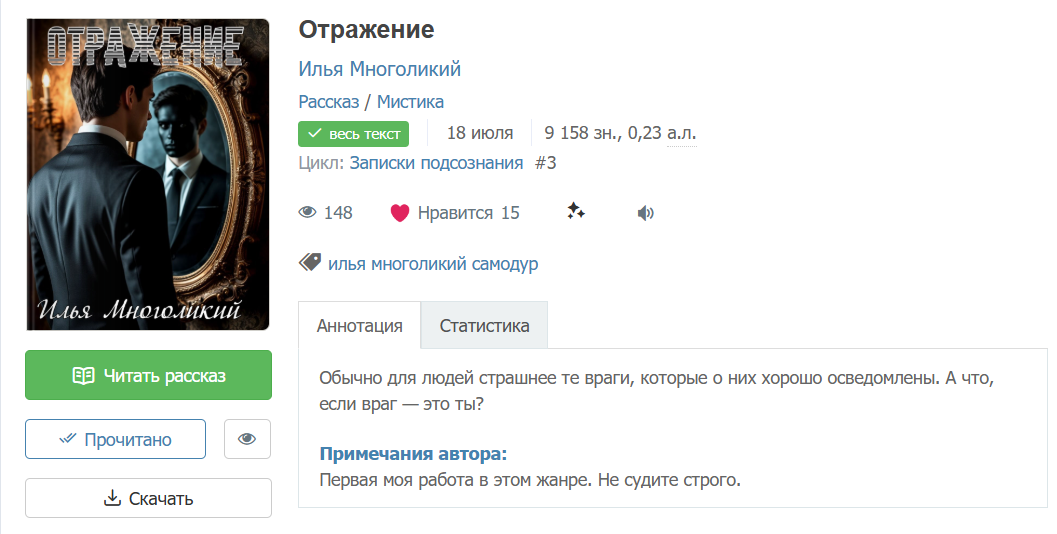 Автор: Анастасия РазумовскаяСегодня у меня в рекомендациях будут практически одни рассказы. И одна аудиокнига. Хочу поделиться с вами довольно-таки тёмными, но очень красивыми вещицами.