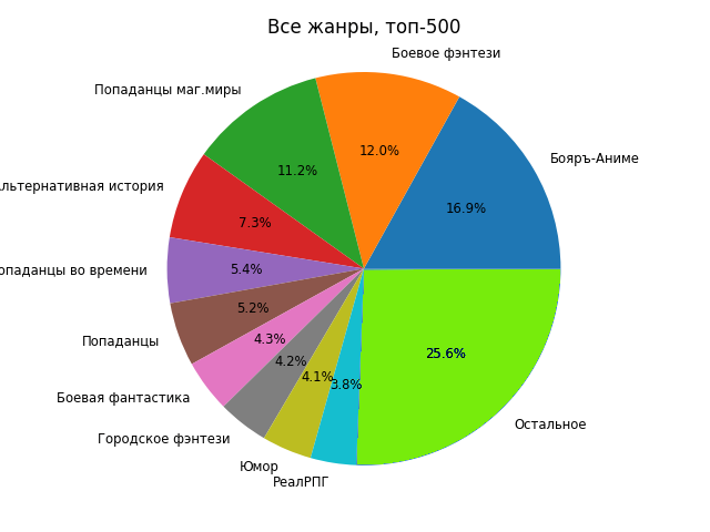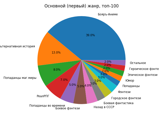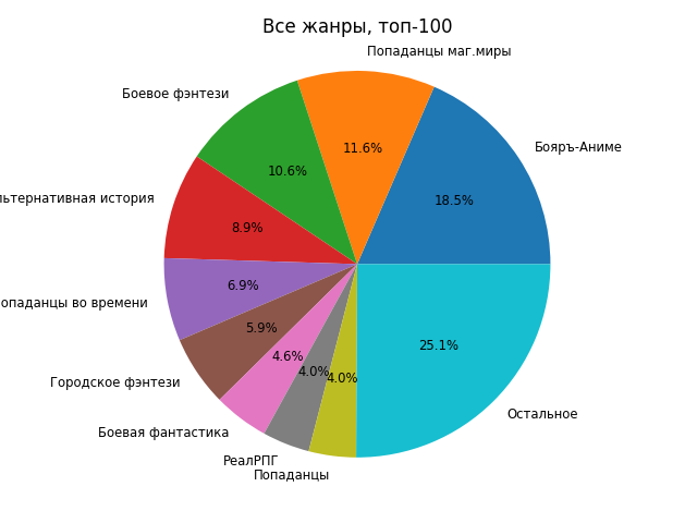 Информация собирается исходя из поисковой выдачи АТ, отсортированной по популярности за месяц: https://author.today/work/genre/all?rp=month&eg=-&fnd=false&page=1 (все фильтры были специально отключены).