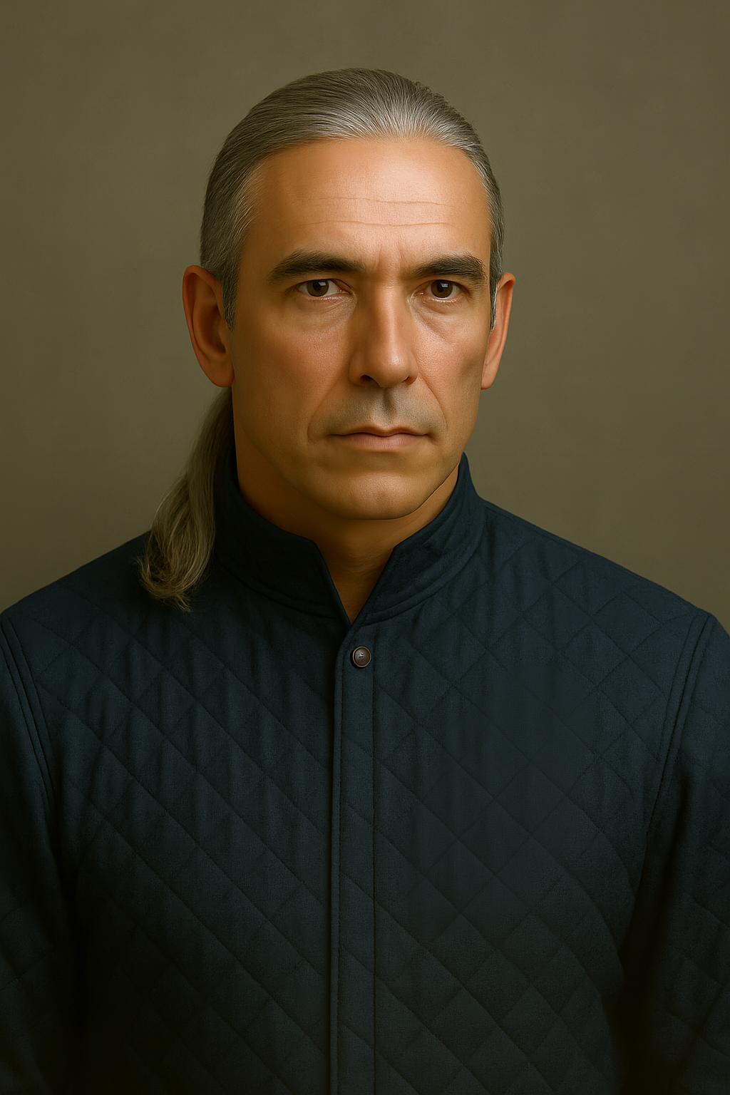 Итак, в цитате - описание персонажа, под спойлером - генерация нейросети, так что перед тем, как жать на спойлер, можно представить себе героя и поспорить с картинкой. Скажу сразу, фото как на паспорт, не иллюстрация к фрагменту)