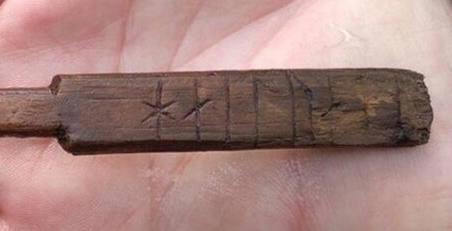 Автор: Елена СтаниславоваВ Новгороде (Великом, безусловно) был найден деревянный (вырезанный из сосны) игрушечный меч с руническими надписями: