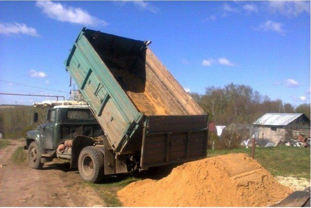 — внизу самосвал вываливал гору песка и два бойца лопатами загружали его в ковш;