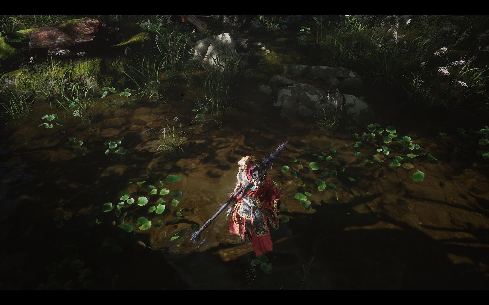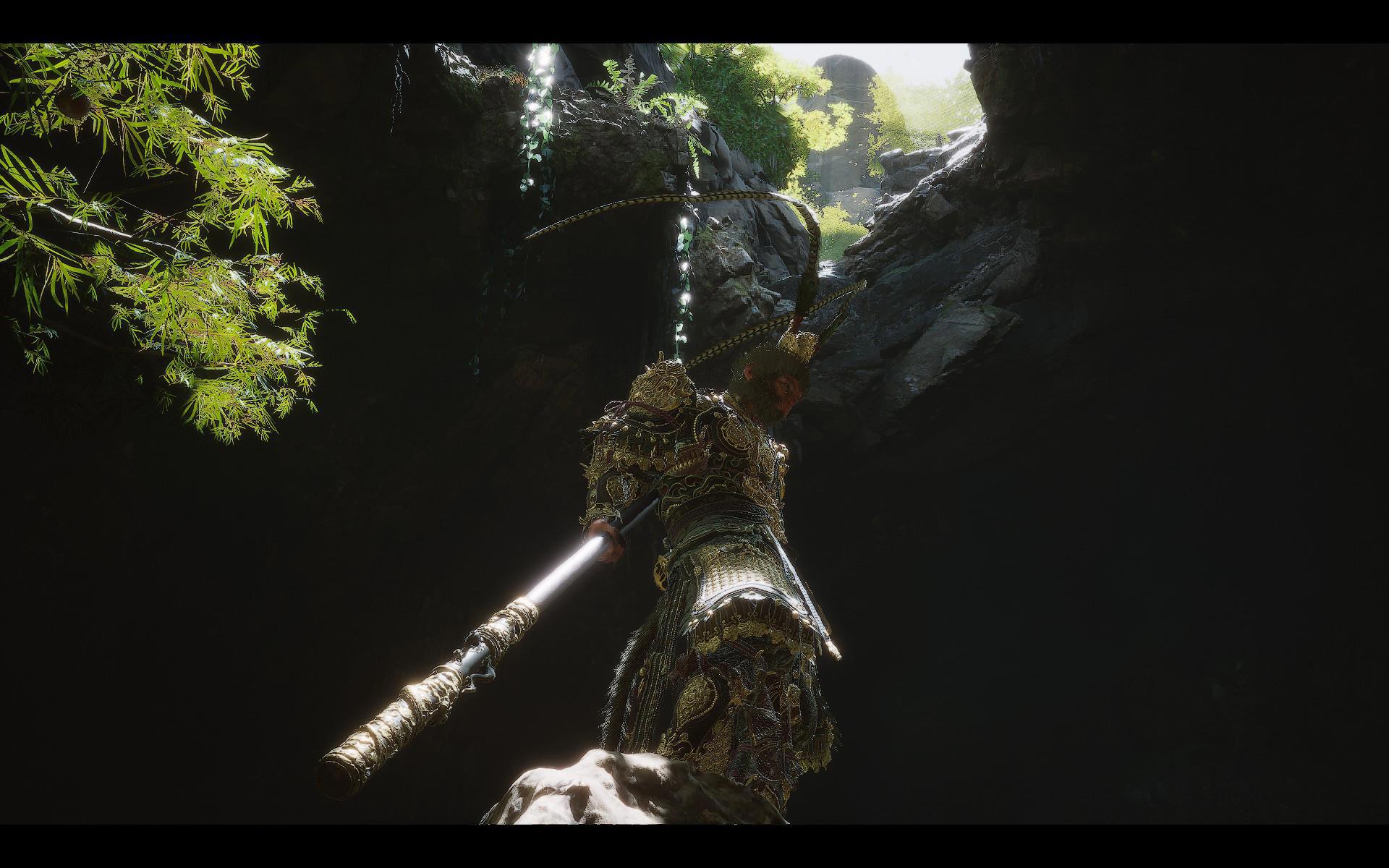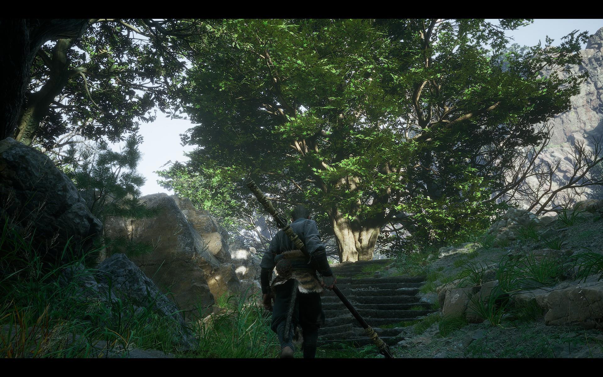И вообще разработчиков, мягко говоря, трудно назвать перфекционистами. Во-первых, они совершенно не умеют делать водопады: еще в первой главе у меня возникал вопрос, почему этого натурного элемента в окружении так мало, хотя он заслуженно носит звание одного из самых живописных. Но ближе к финалу стало ясно, что это просто слабое место авторов: все местные достопримечательности такого рода сделаны по одной схеме - и все неудачно, а потому создатели пошли наиболее легким путем и уменьшили их количество до минимума. И вспоминая водопады, закрывавшие Пещеру Водного Занавеса в экранизациях "Путешествия на Запад", я понимаю, что на горе Хуаго, пожалуй, даже не отдохнули - ее основательно "обгрызли". Во-вторых, на любых объектах, на которых можно "схалявить", Game Science обязательно "халявят". Взять те же деревья: в зонах "основного посещения" хватает детально проработанных образцов, но стоит отойти куда-нибудь (необязательно даже в глушь) - и пойдут квадратные модели, которых будто наспех обтесали топором. Ну, чтобы они создавали видимость зарослей.