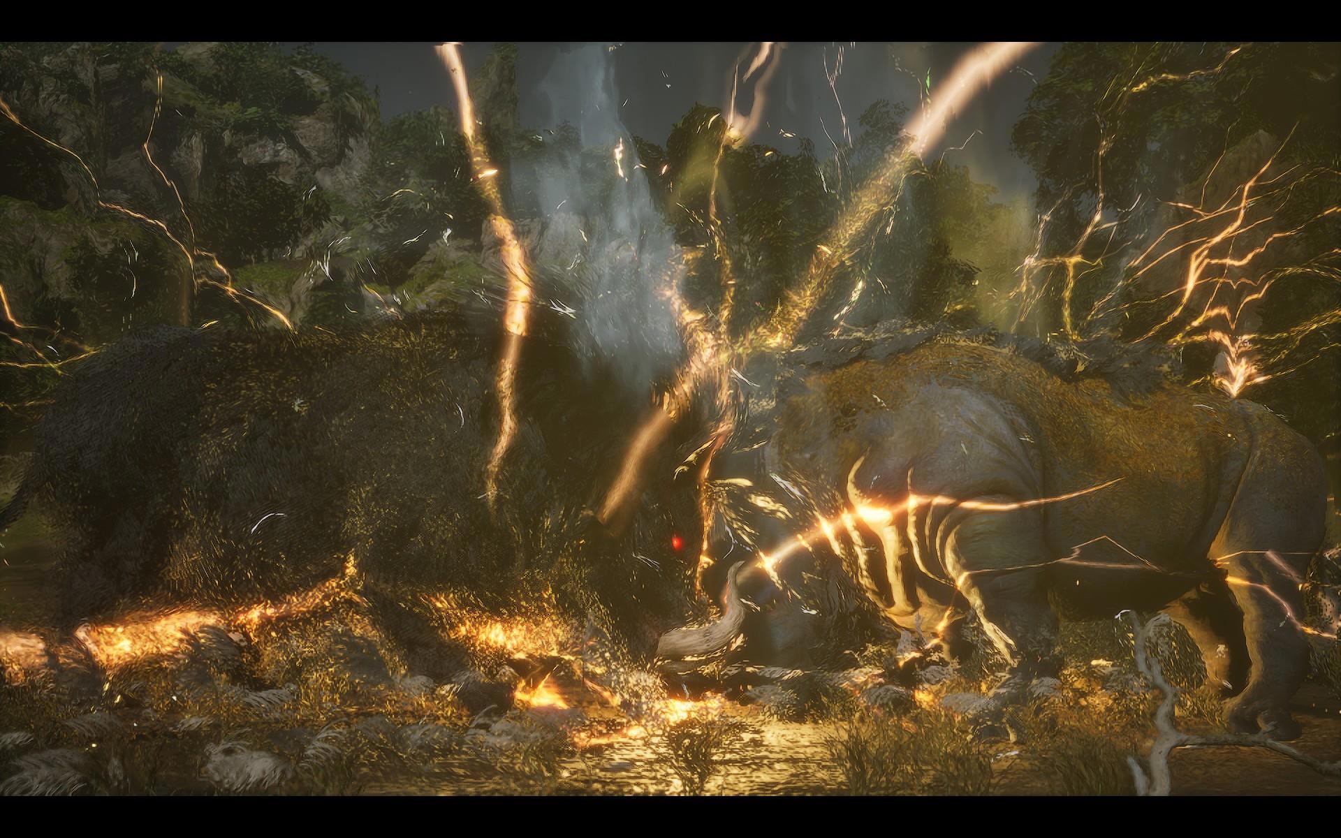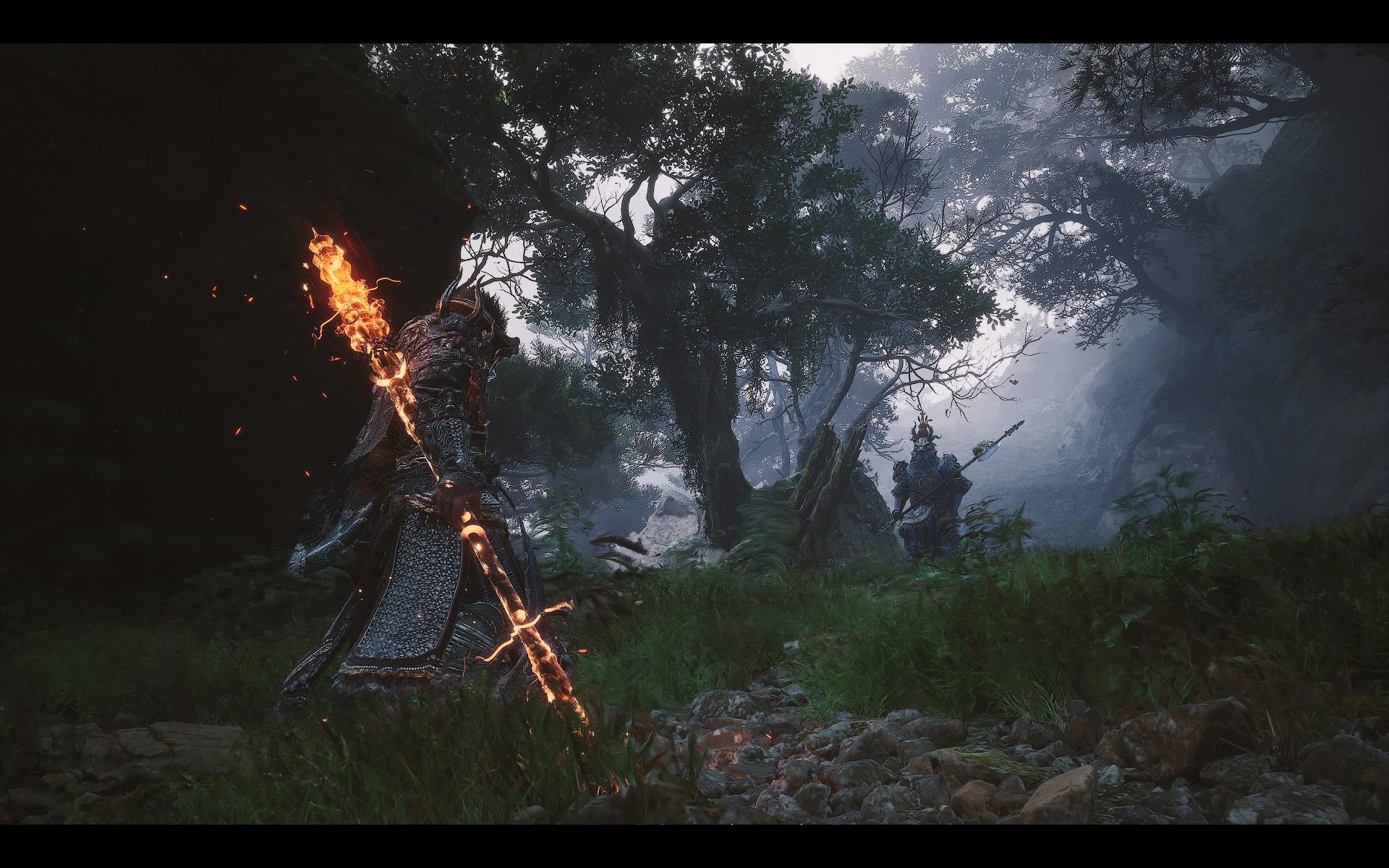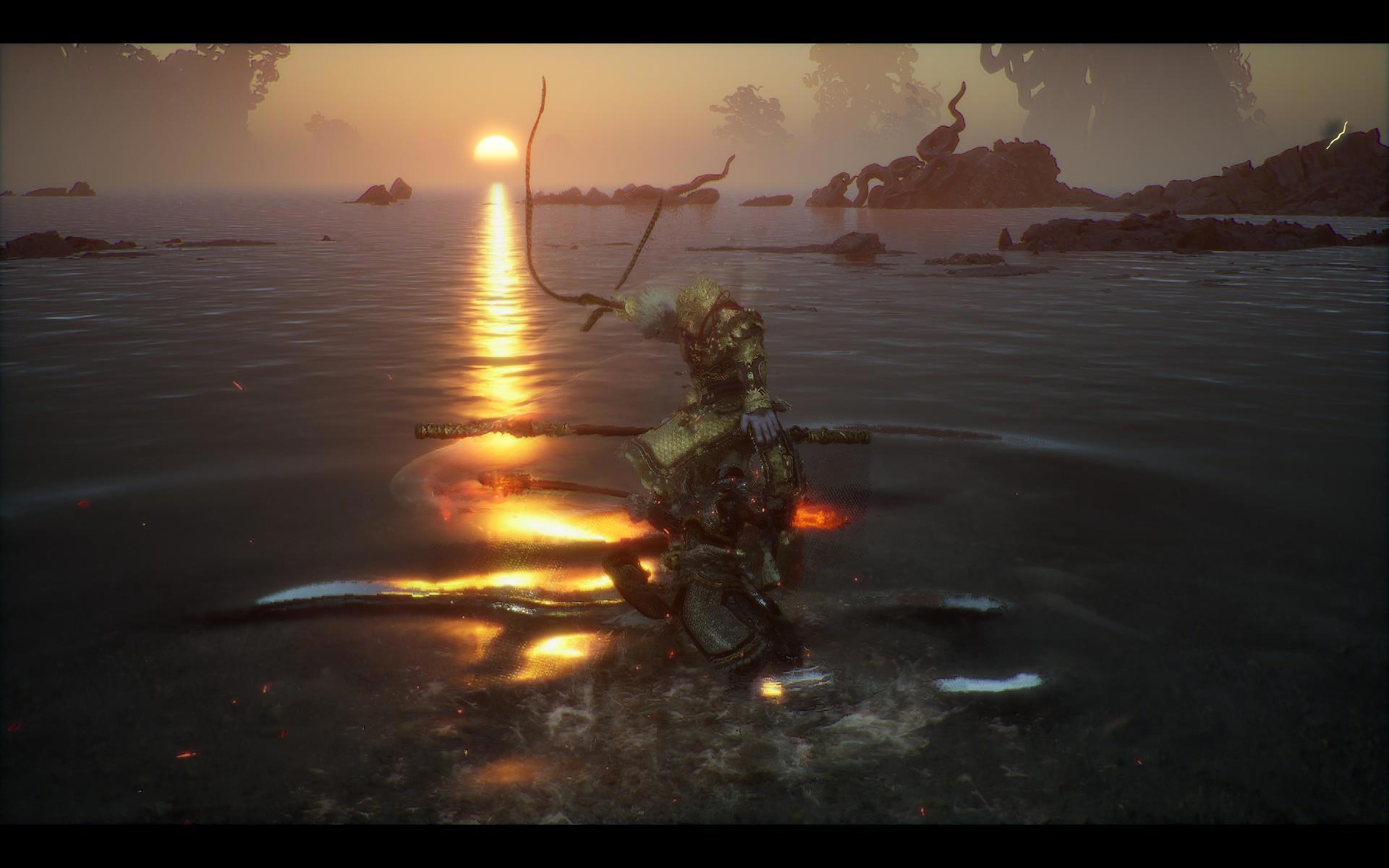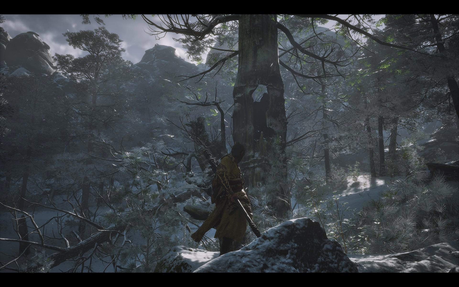 И вообще разработчиков, мягко говоря, трудно назвать перфекционистами. Во-первых, они совершенно не умеют делать водопады: еще в первой главе у меня возникал вопрос, почему этого натурного элемента в окружении так мало, хотя он заслуженно носит звание одного из самых живописных. Но ближе к финалу стало ясно, что это просто слабое место авторов: все местные достопримечательности такого рода сделаны по одной схеме - и все неудачно, а потому создатели пошли наиболее легким путем и уменьшили их количество до минимума. И вспоминая водопады, закрывавшие Пещеру Водного Занавеса в экранизациях "Путешествия на Запад", я понимаю, что на горе Хуаго, пожалуй, даже не отдохнули - ее основательно "обгрызли". Во-вторых, на любых объектах, на которых можно "схалявить", Game Science обязательно "халявят". Взять те же деревья: в зонах "основного посещения" хватает детально проработанных образцов, но стоит отойти куда-нибудь (необязательно даже в глушь) - и пойдут квадратные модели, которых будто наспех обтесали топором. Ну, чтобы они создавали видимость зарослей.