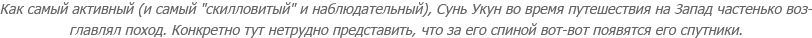 - Избранных много и они сменяют друг друга (если точнее, запись в журнале гласит, что он был не один и, возвращаясь, рассказывал старому бибизяну отличную от других историю странствий) - а значит, после окончания путешествия все "отматывается" назад. В этой связи я даже подозреваю, что в прологе нам на самом деле показывают не настоящего Сунь Укуна, а Избранного "предыдущей итерации".