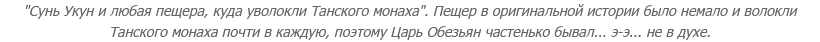 - Так как история - замысел Небожителей, очевидно, что это не замысел самого Сунь Укуна (что бы там разработчики ни мудрили в версиях а ля "старый бибизян - это сам Сунь Укун"). Более того: самому Сунь Укуну она не выгодна, ибо он, по факту, попал в бесконечный цикл перерождений - без возможности, собственно, перерождения. А еще, если он и правда покончил с собой, представляется весьма странным, чтобы он затеял эпопею с возвращением себя к жизни: на кой черт оно ему, если его все настолько достали? Типа многоходовочка, чтобы переродиться без Обруча? Но толку с нее - ведь Обруч в результате на него надевают повторно? (Что выглядит и того бредовее, если "старый бибизян - это сам Сунь Укун": сам на себя ненавистный Обруч напялил - так, что ли?)