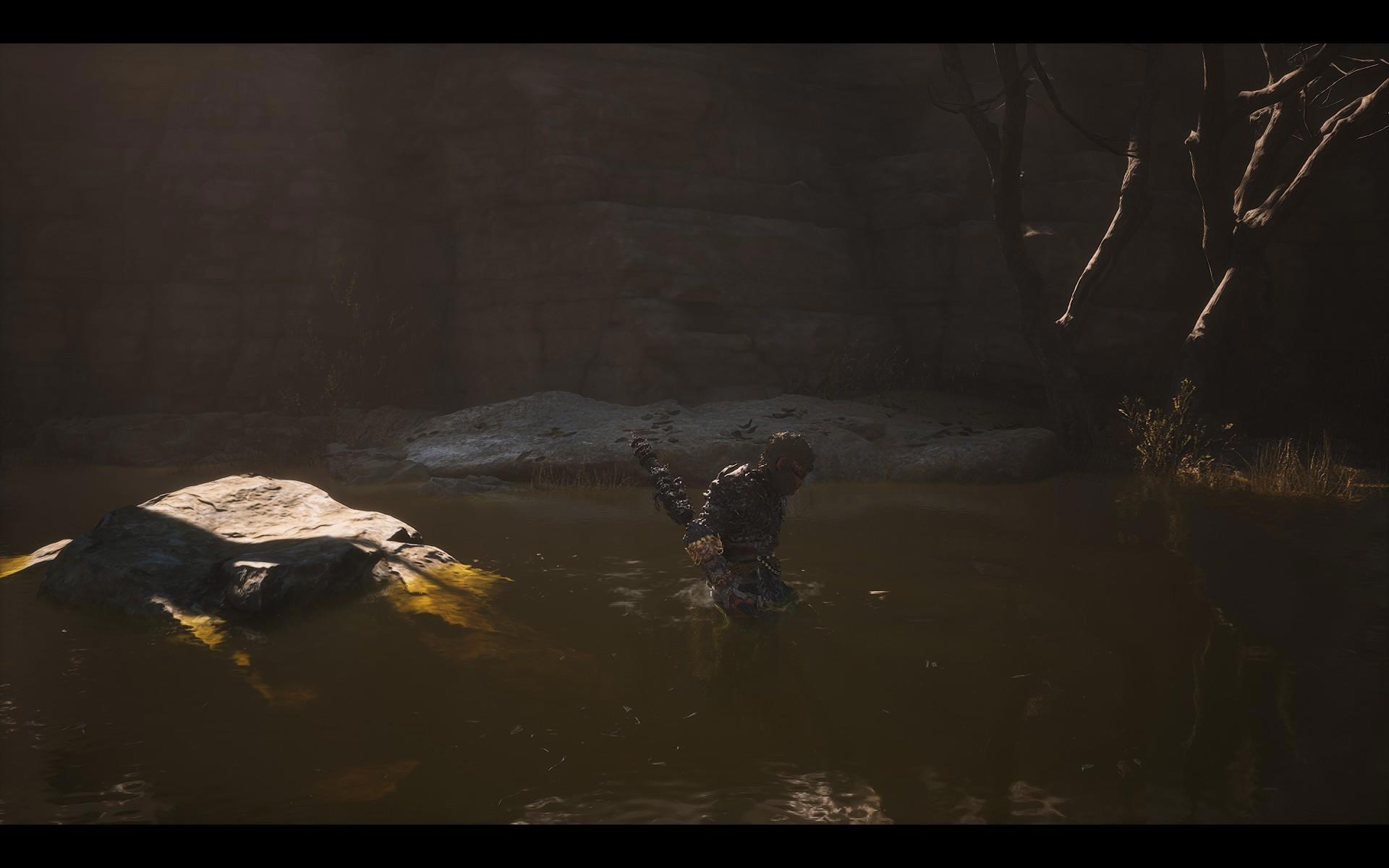 Ясное дело, не обошлось и без шероховатостей: например, в данный момент Избранный совершенно не моргает "на игре" (хотя с удовольствием делает это на экране инвентаря), а проходящий через объекты посох заставляет корректировать его положение при съемке. И, конечно, UE5 с его возможностями (прежде всего освещения) - капризный и тяжеловесный движок, который в данном случае попал в правильные руки... сказала бы я, если бы неЭтот аспект - бесспорно, боль для любой игры на UE5, но для знаковой игры типа BMW - вдвойне. В первой и второй главах багов не много, но, начиная с третьей, они быстро захватывают окружение. Да, какой-нибудь "летающий" куст или поверхность без звука шагов не мешают прохождению основного сюжета, но, если подумать, миры с "коридорным" дизайном очень хрупки, и разрушить иллюзию, в которую они погружают игрока, в них способна любая мелочь. Хотя в этом мире наиболее "пострадавшей" от багов локацией оказалась вовсе не "коридорная".