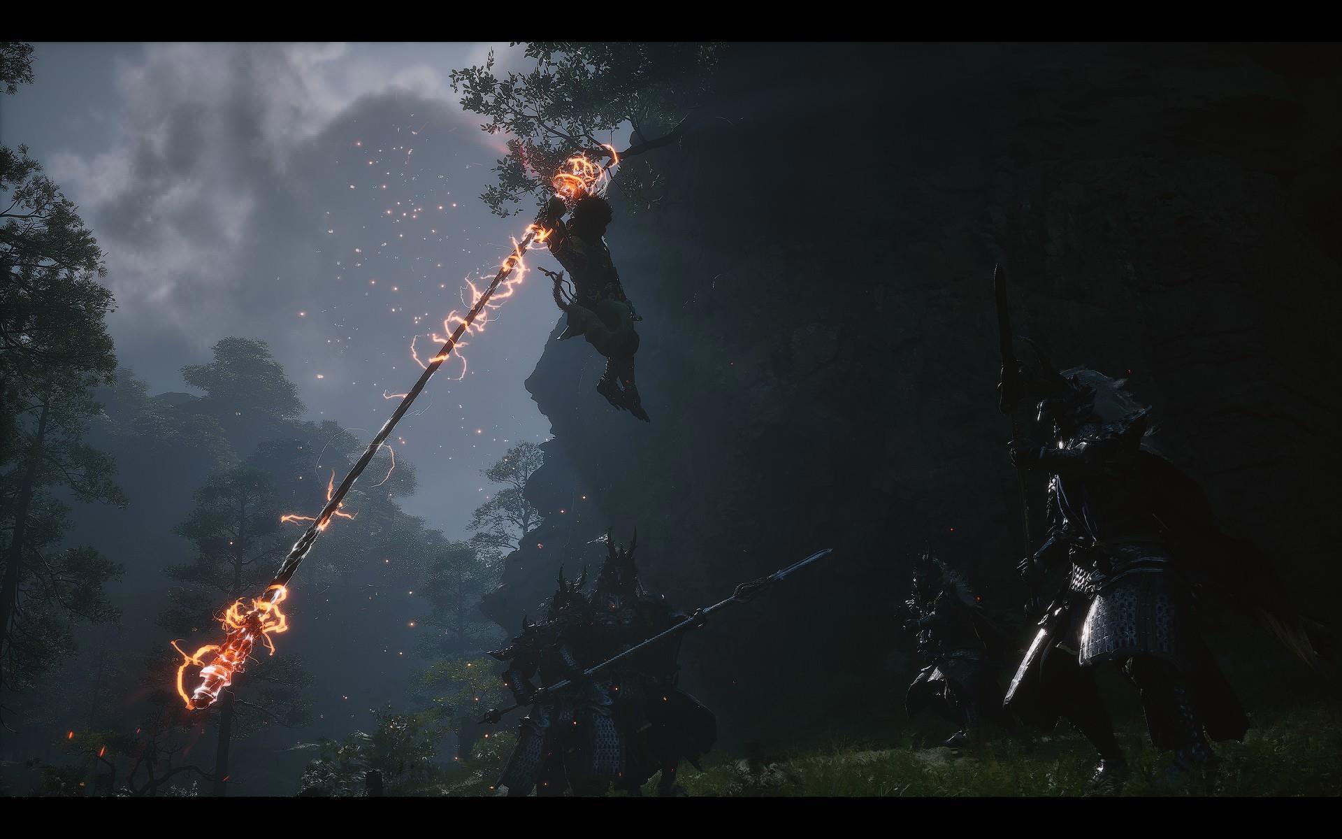 Помимо стоек, Избранный владеет заклинаниями. Их всего семь и их тоже надо прокачивать (соответствующие ветки открываются по мере прохождения в разных главах), но одновременно можно таскать и применять только три. Заклинания - довольно крутая штука, в том числе и на первых порах, когда персонаж еще не очень силен: они позволяют подстраивать тактику под обстоятельства, задействуя такие канонические приемы Сунь Укуна, как замораживание врагов, призыв двойников или уже упоминавшуюся невидимость. При использовании тратят очки маны.